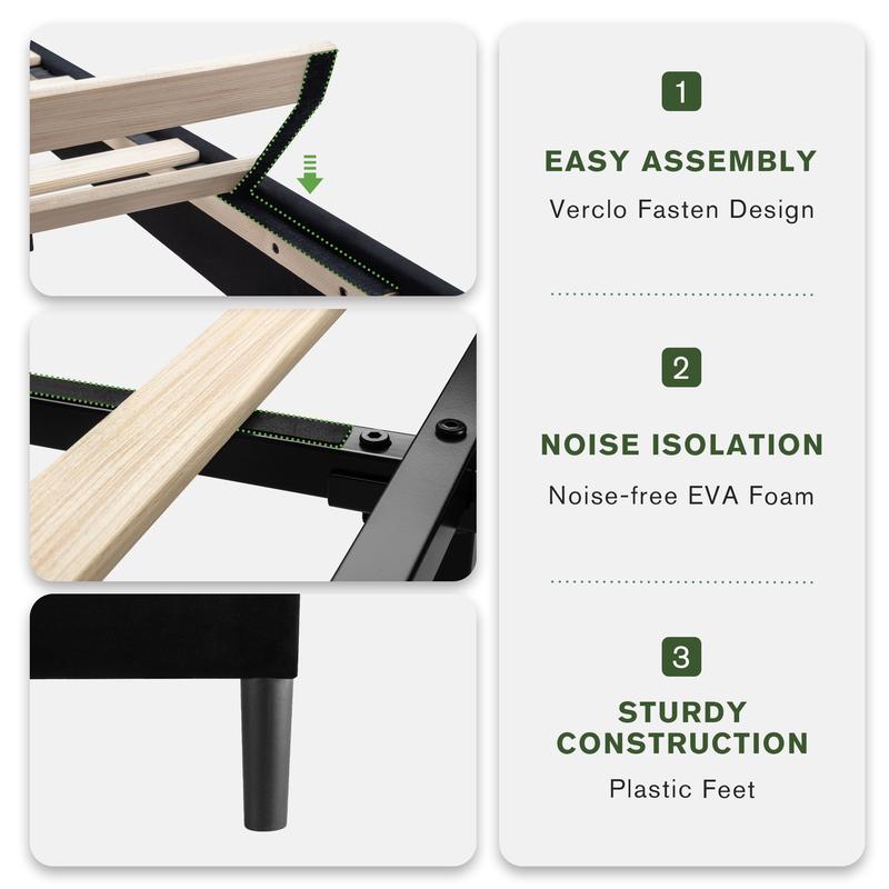 ·Strong Structure: The bed frame is equipped with wooden slats and strong wooden feet, providing even support, enhancing the stability and comfort of the mattress, ensuring users have a good sleeping experience.