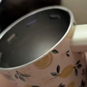 It’s beautiful, a very secured Coffee cup love how sturdy it is love the inside will be buying more very very impressed