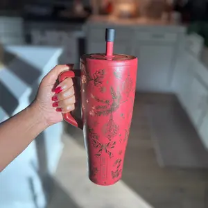 Absolutely love this Christmas print, so happy to see holiday prints coming out! My only complaint is that I wish it was a bright Christmas red, not this deep dark maroon color. Been using this all winter long, though for my hot cocoa and hot teas!