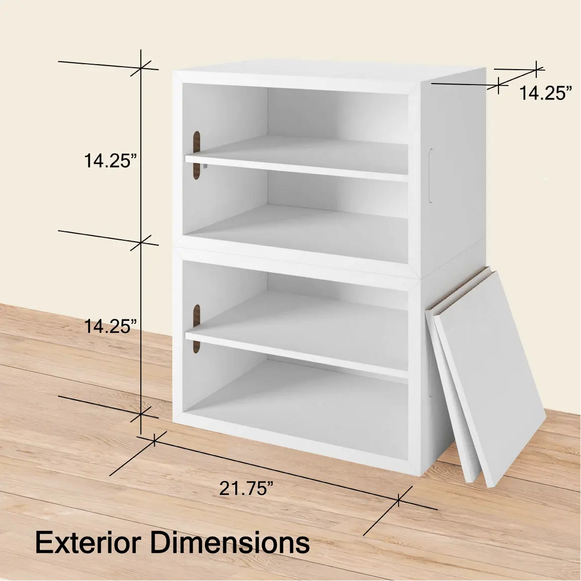Dimensions: Exterior dimensions: 21.75"x 14.25"w x 14.25"d Interior dimensions: 19.75"x12"w x 13"d
