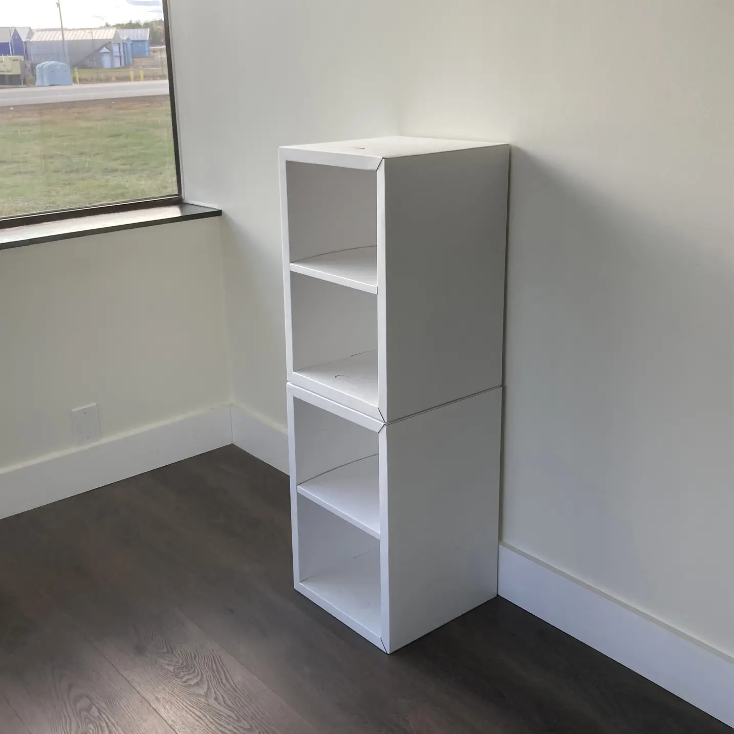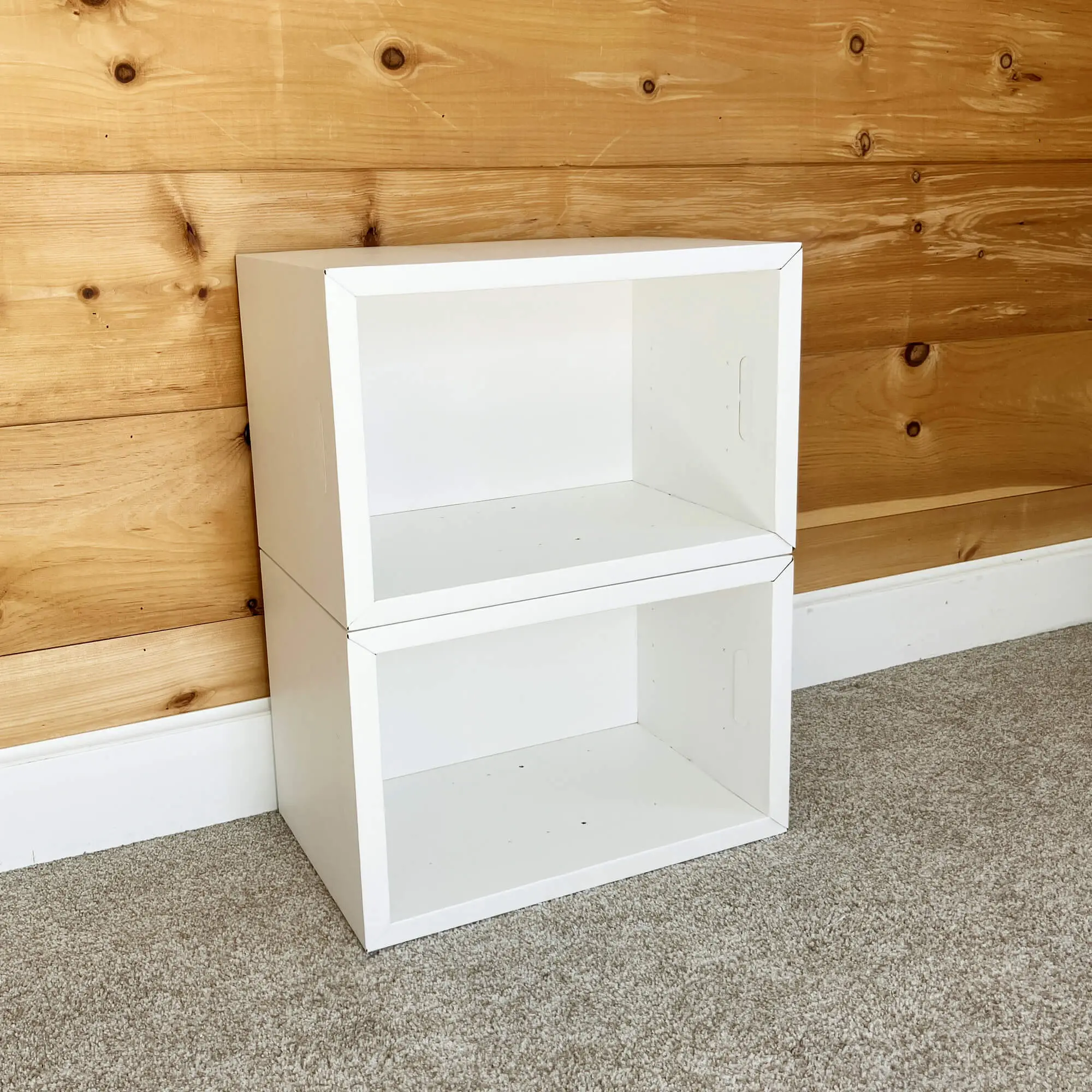 Includes: 2 Muvo Boxes, 2 Large Shelves, 2 Small Shelves, Shelf Peg Kit