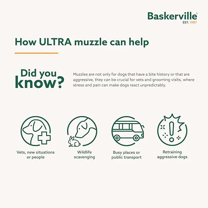 Baskerville Ultra Muzzle - Patented Humane Design, Breathable, Adjustable, Padded, Humane for Large Dogs, Prevents Biting, Suitable for Daily Walks