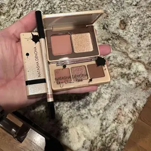 This set comes vmini eye trio, mini blush duo, full size lip liner and lipstick, along with a beautiful little golden clutch! I prepaid line the set and the colors! Definitely would recommend!!💯💯🎯‼️🖤