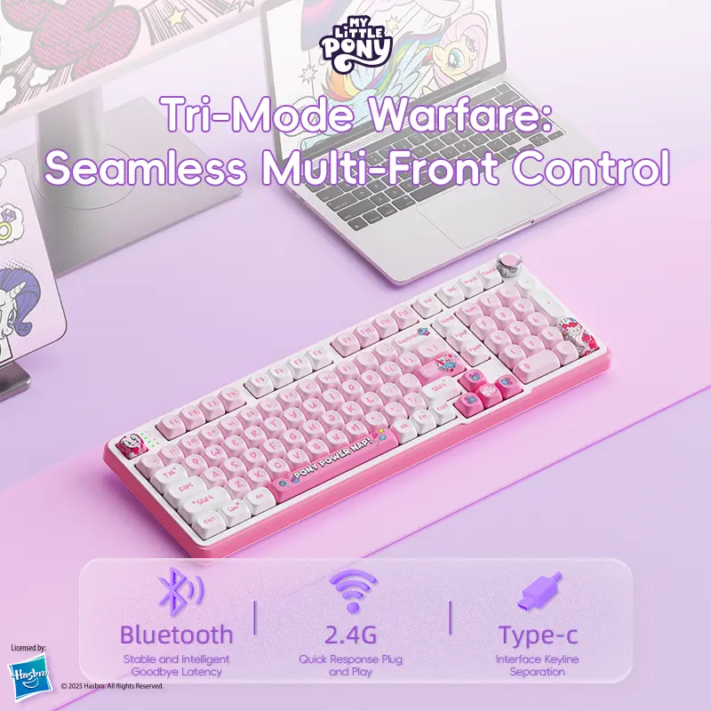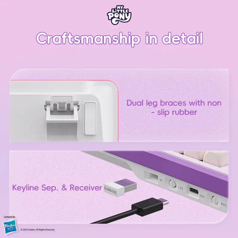 AMAZING keyboard! Super cute and amazing quality! Has a nice thocky sound to it and I love that it can be used wired or wirelessly. I would love to see the other My Little Pony characters get their own keyboards as well!