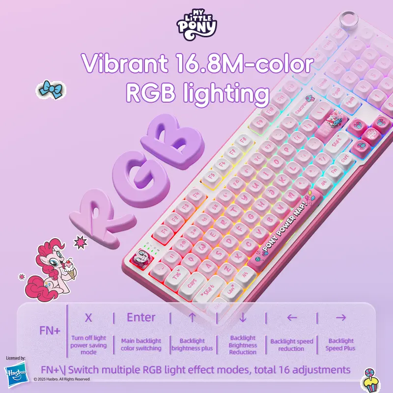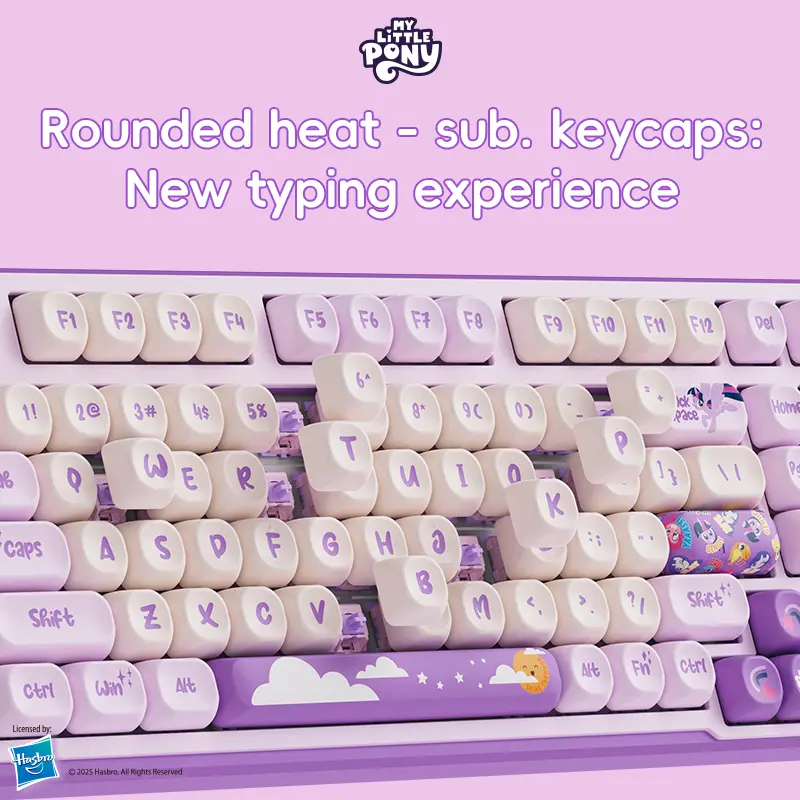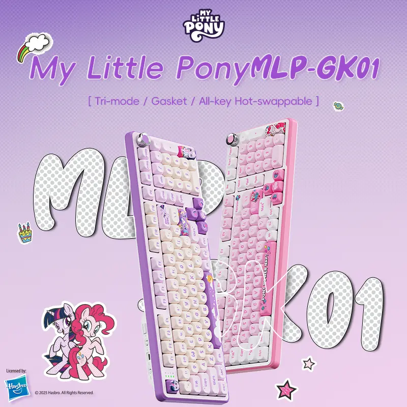 OBSESSED!!! Loved the pink My Little Pony MLP GK01 keyboard so much I had to purchase the purple one, both at a great flash sale. Excellent quality keyboard with awesome sounding and feels from the keycaps and with a full size zero. Great RBG!!! I bought the matching purple mouse. 💜💜💜