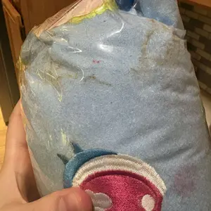 OMG I LOVE HER SO SO SO SO MUCH!! SHE'S SO SOFT AND SO MUCH LARGER THAN I THOUGHT. The way of packaging was interesting, my flutter baby was all squished 😭 She's larger than I expected, my hands are kinda small(medium) but you can see how much larger she is.