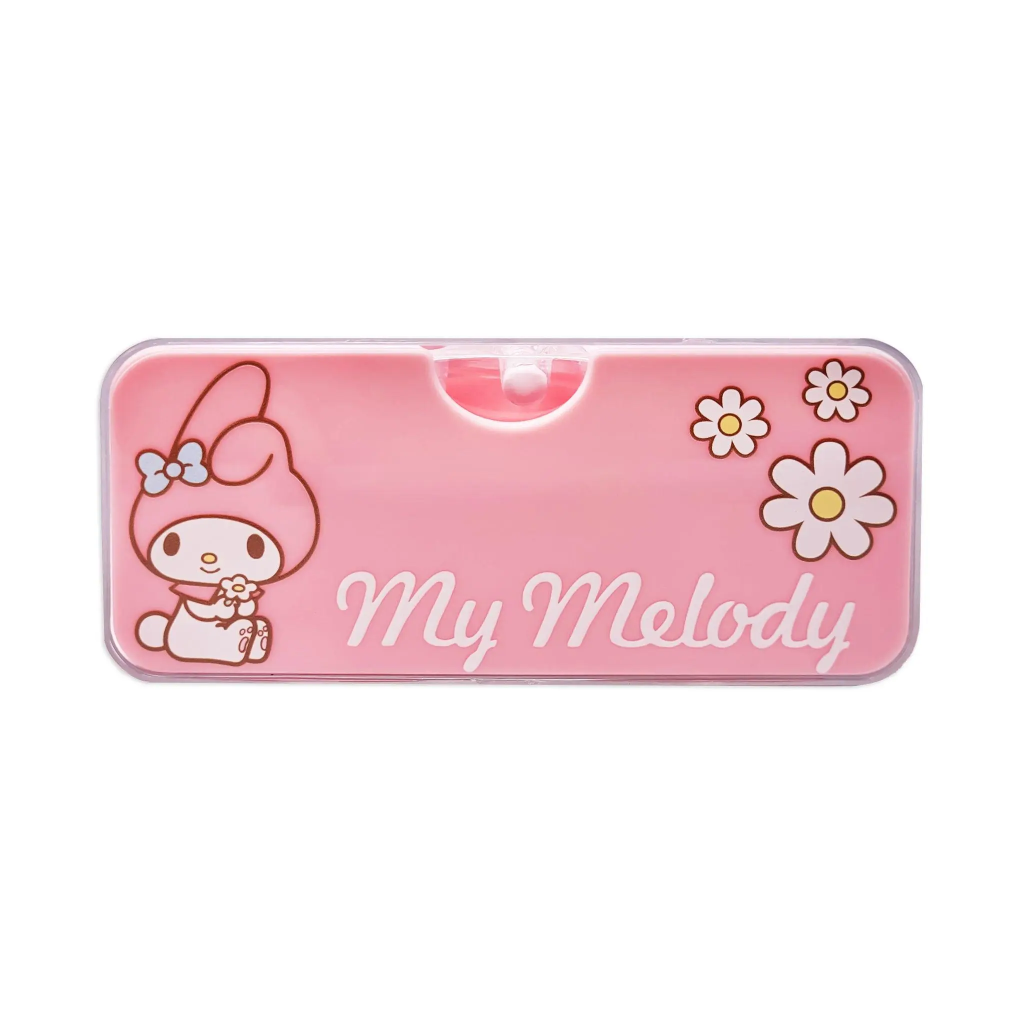 You can never have too many beauty tools! This beauty tray set features My Melody artwork with gold accents, adding a touch of sweetness to your makeup collection. Perfect for travel or everyday use, it includes three ultra-soft makeup brushes, two flat sponges, and one teardrop blending sponge for flawless application. Conveniently housed in a pull-out tray, it s designed to store your beauty tools in style. Official Licensed Sanrio® Product Why We Love It: Cruelty & Latex Free 3 Makeup Brushes Powder Brush Eyeshadow Brush Angled Liner Brush 3 Makeup Blending Sponges Flat Sponge (2) Tear Drop Shape (1) Sturdy Container w/ Pull out Tray Container Case 5.25 x 7.5 x 2.25 in. Figural Shaped Makeup Sponge- Dry (W x H x D) 3.5 in.
