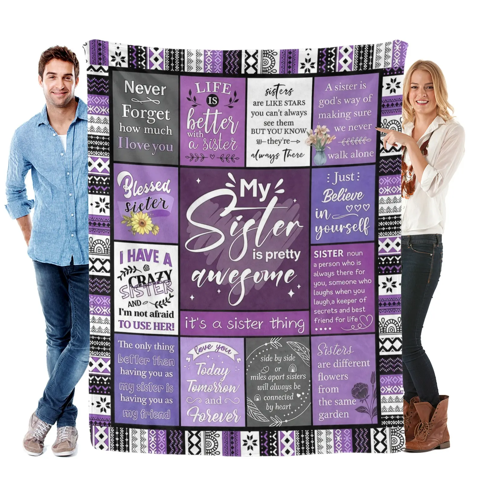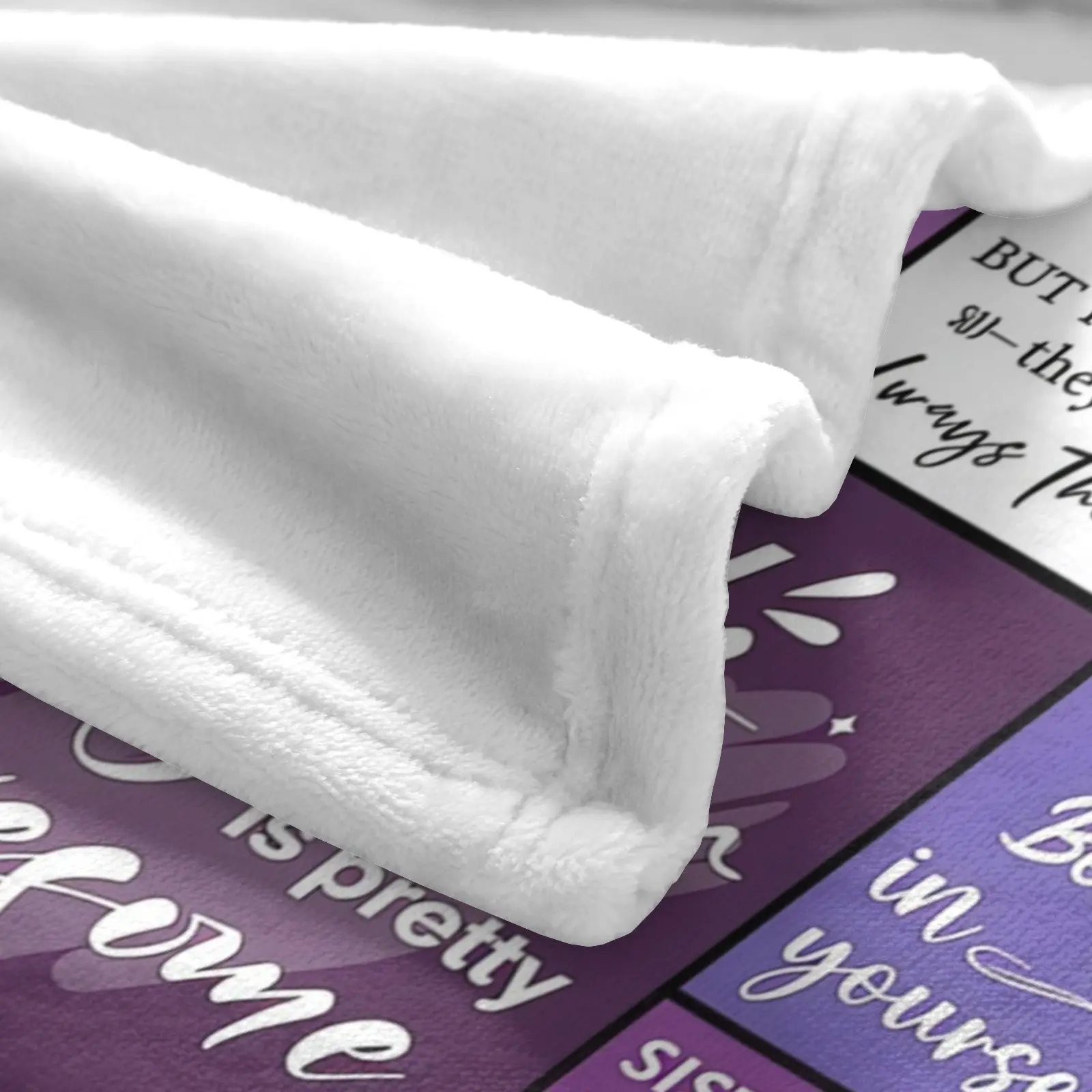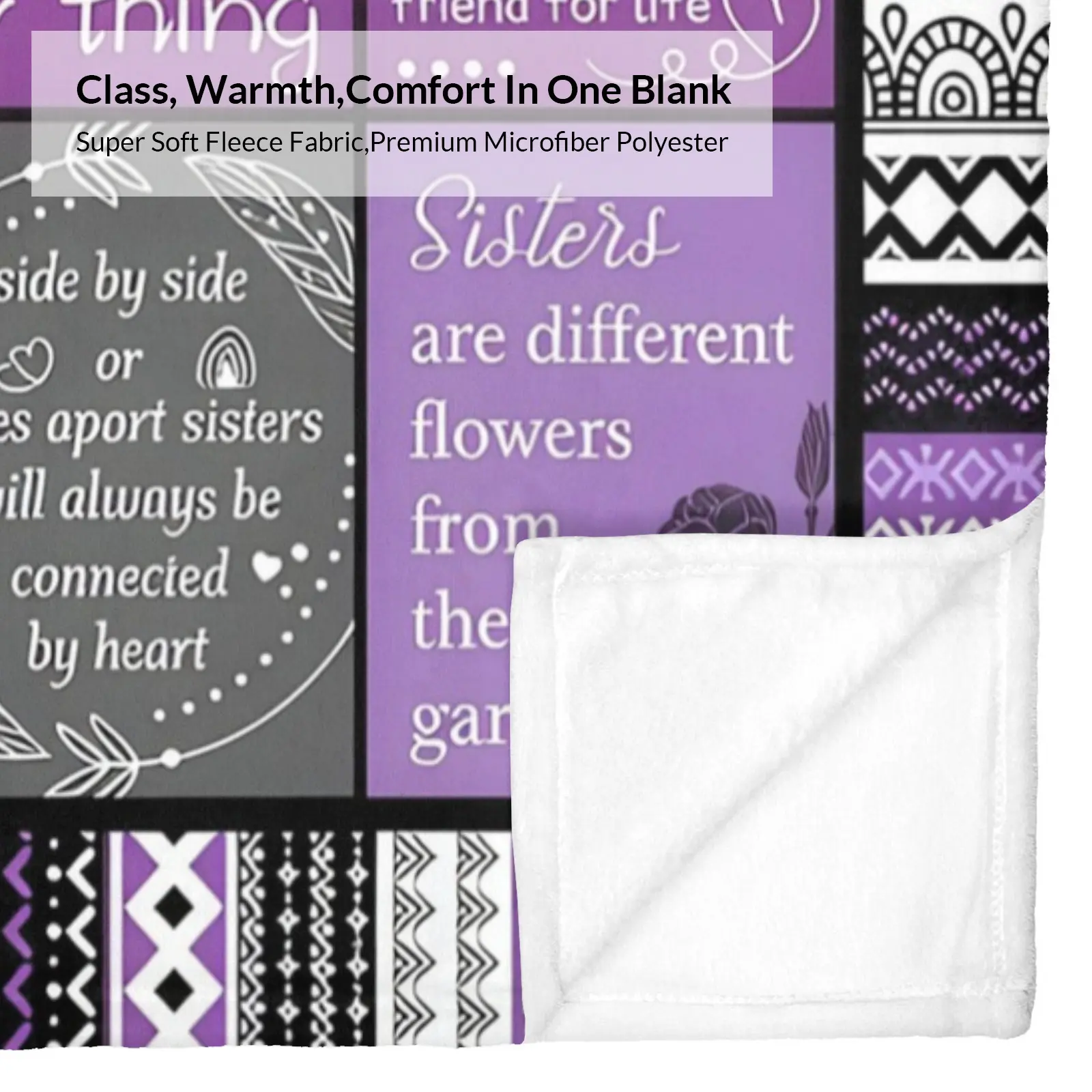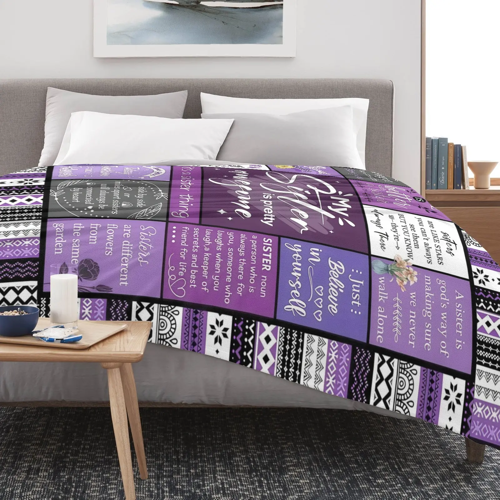 My Sister Flannel Blanket Soft Cozy Gift Throw with Heartwarming Sisterhood Quotes Stylish Purple Patchwork Design Perfect for Gifting Snuggling or Adding Sweet Bonding Charm to Any Home Space