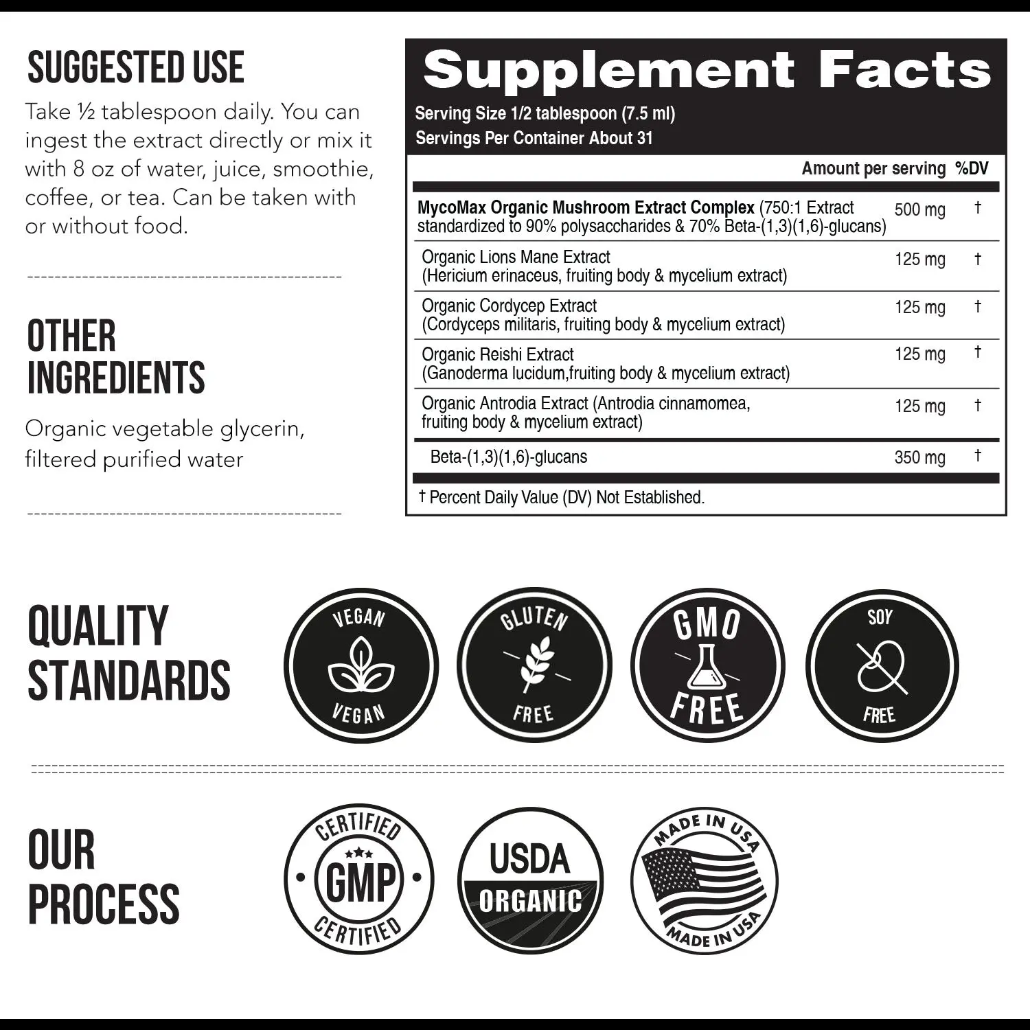 Wonderful sweet delicious blend of mushrooms in this easy to drink liquid form