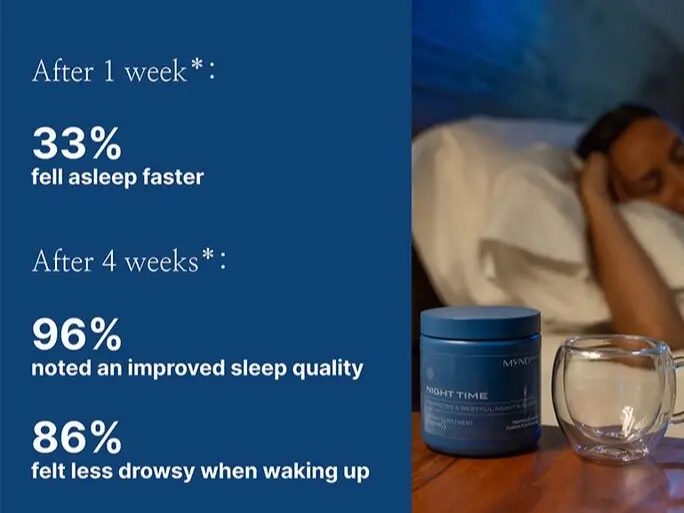 Experience the benefits of MYND360 Night Time Sleep and enhance your sleep quality with a formula that works with your body’s natural sleep rhythm.