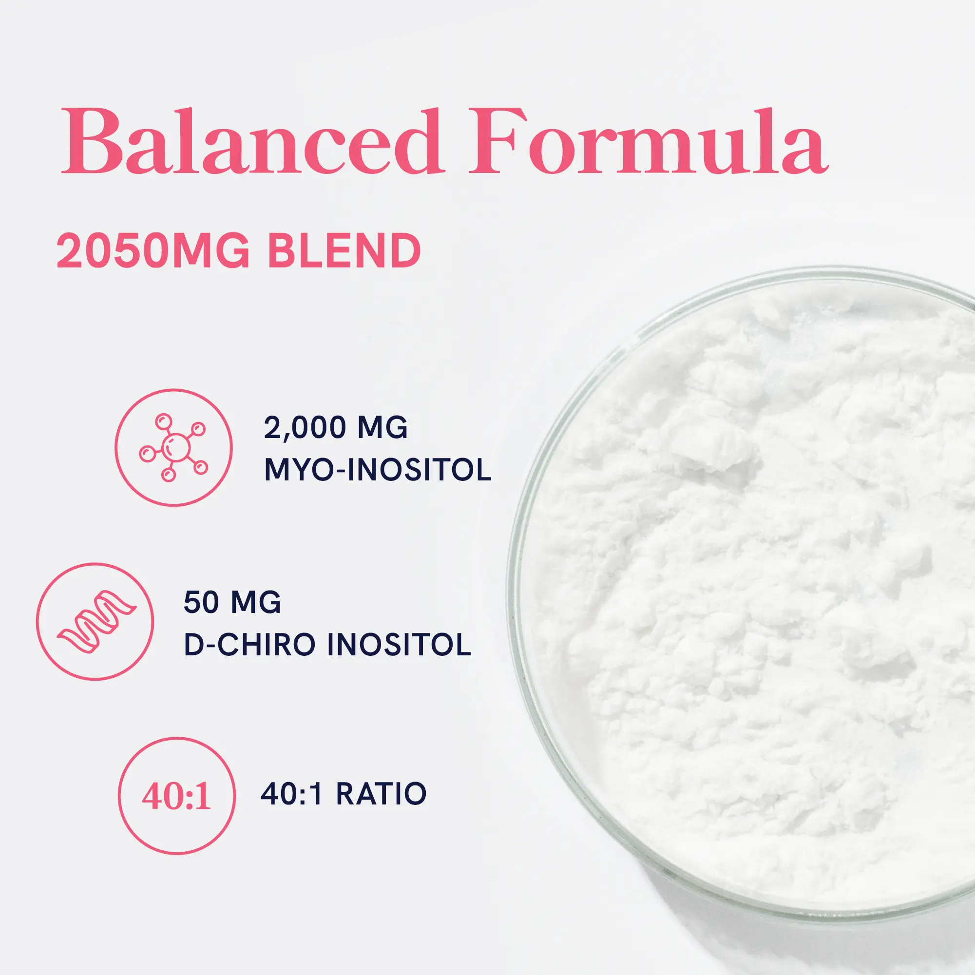 IDEAL 40:1 RATIO: Our Myoinositol and D Chiro Inositol pills are formulated to match the body’s own ratio of 40:1, with 2,000 mg of Myo-Inositol and 50 mg of D-Chiro Inositol powder per serving.