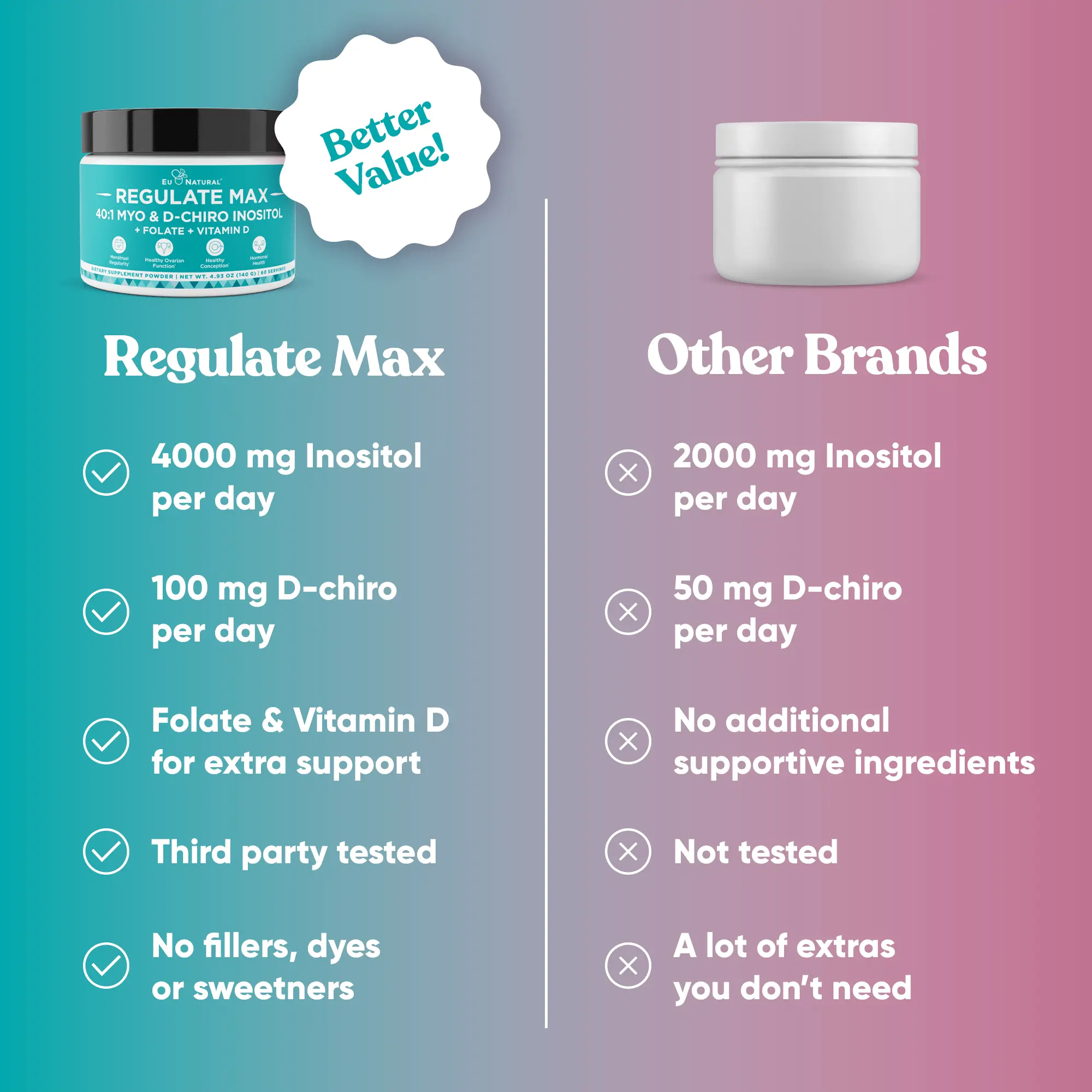 Eu Natural Regulate MAX – Myo Inositol & D-Chiro Inositol Powder