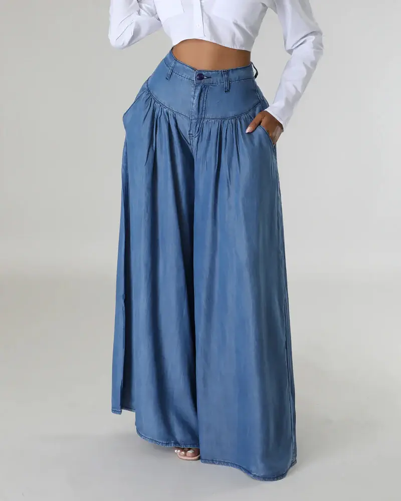 ·The long, wide leg cut offers a flared silhouette, adding a touch of elegance to any outfit. 🌟