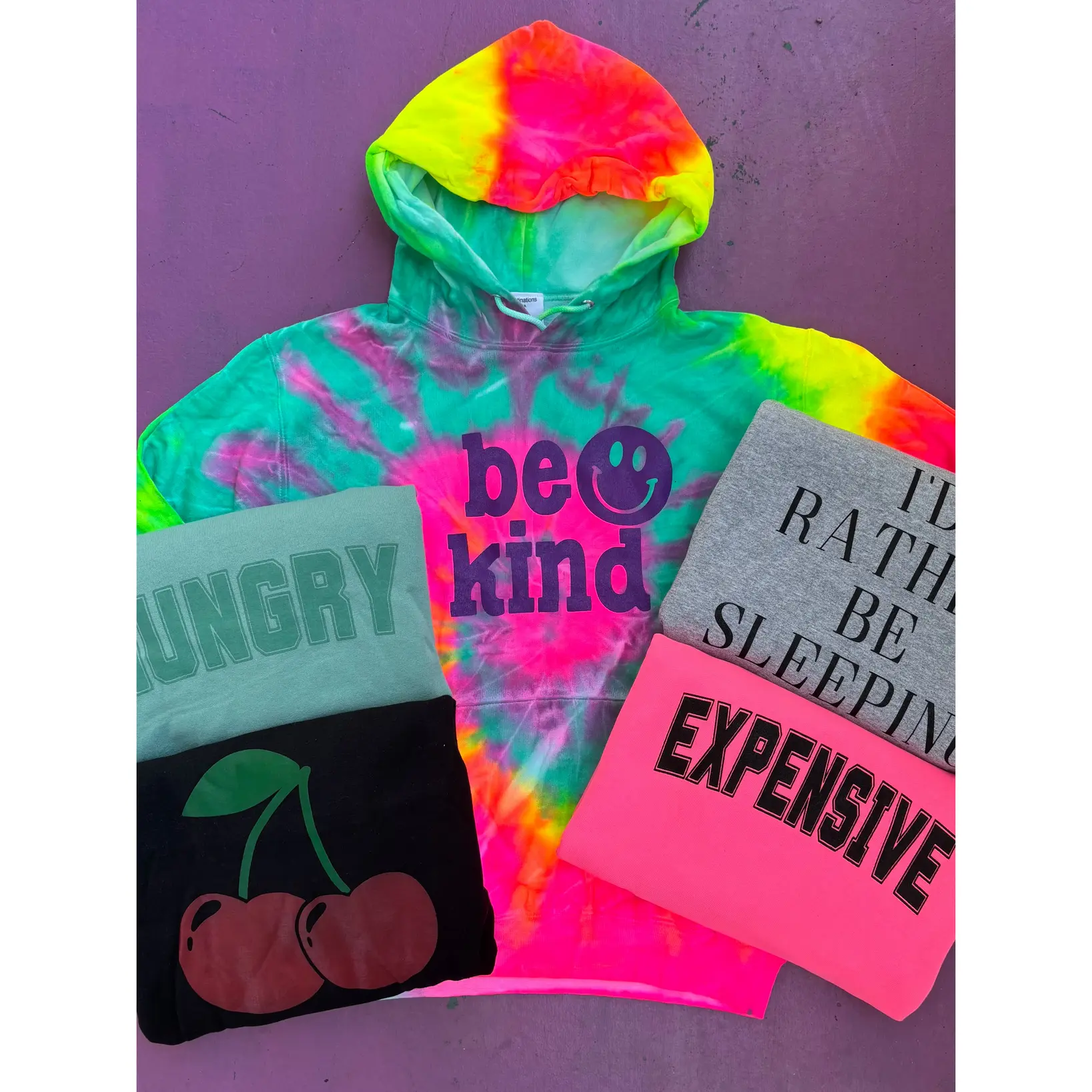 This listing is for one surprise sweatshirt. You might get a hoodie, a crewneck, or even a zip-up. The design, the logo, the color—it's all random, and it's all part of the fun. What we *can* promise: it'll be bright, bold, and full of kindness.