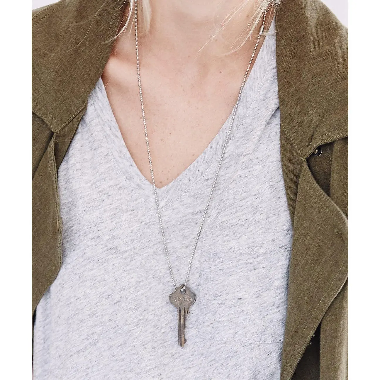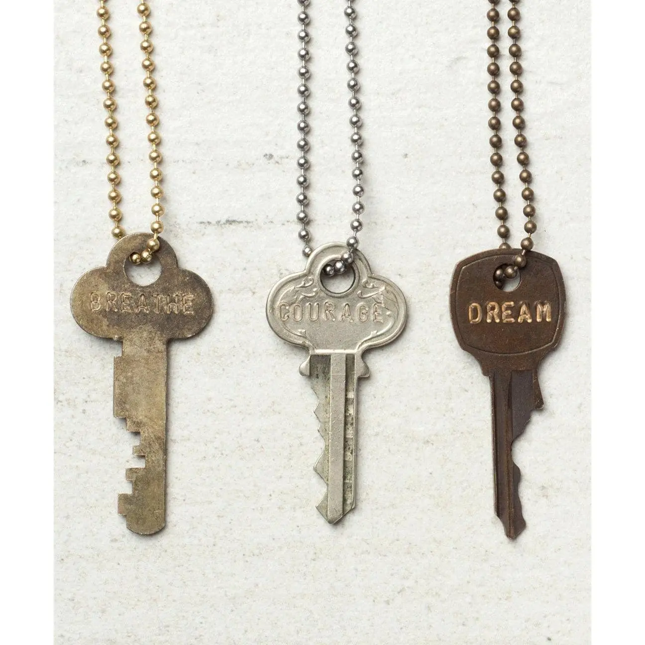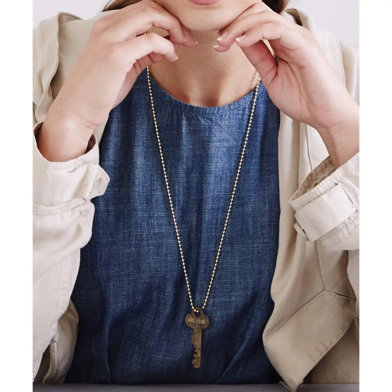 A unique, one-of-a-kind key paired with a 30" gold ball chain necklace