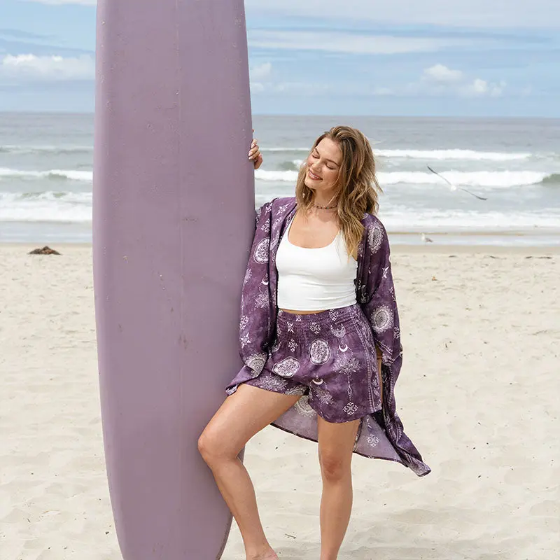 Flow freely in our light and breezy shorts, a wardrobe essential crafted from our signature buttery-soft fabric. Featuring a smocked elastic waistband for a perfect and comfortable fit, these shorts are designed for effortless movement and ultimate relaxation.