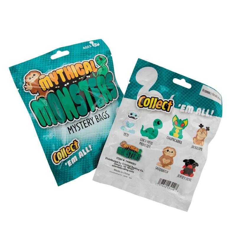 Uncover the fun with Mystery Cryptid Characters Blind Bags! Each mystery pouch contains one of six adorable and cartoony cryptid characters, including Sasquatch, Yeti, Loch Ness Monster, Jackalope, Chupacabra, and Jersey Devil. Perfect for party favors, classroom rewards, or collectors, these blind bags add an exciting element of surprise while showcasing beloved mythical creatures in a cute and playful style. © OTCbr