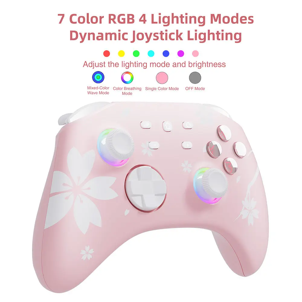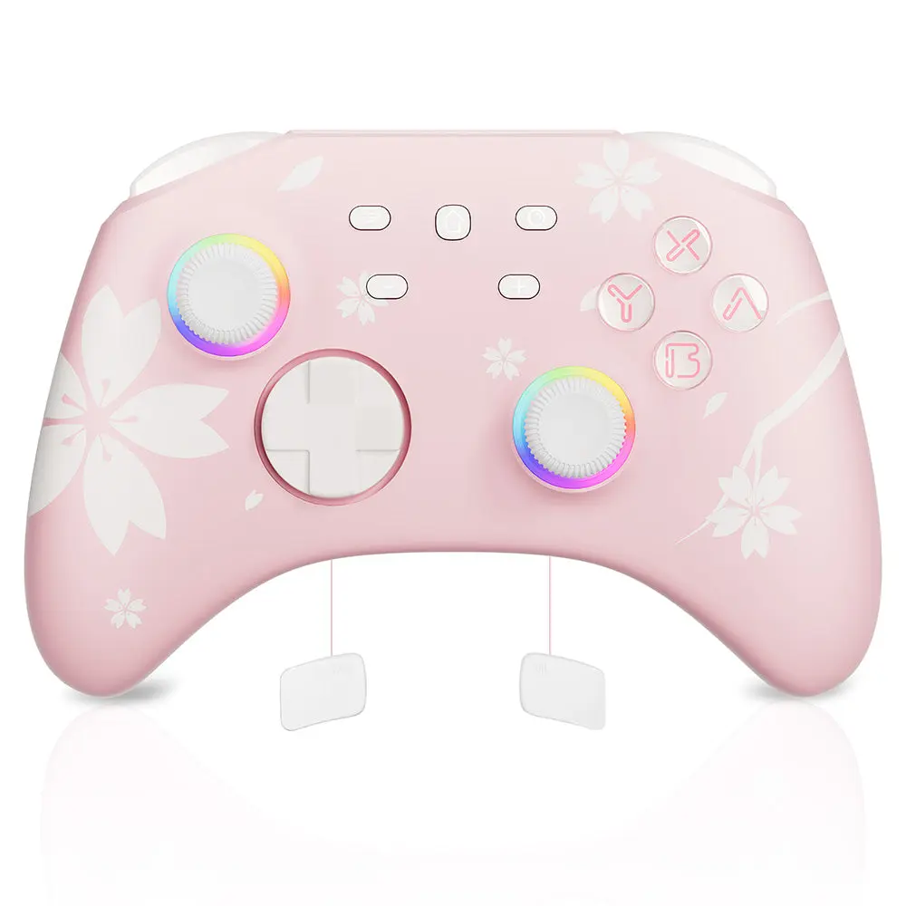 Elegantly designed wireless pro controller adorned with cherry blossom flowers. Crafted from high-quality, non-slip ABS material and featuring an ergonomic grip, it offers a comfortable hold and ideal weight balance for prolonged gameplay.