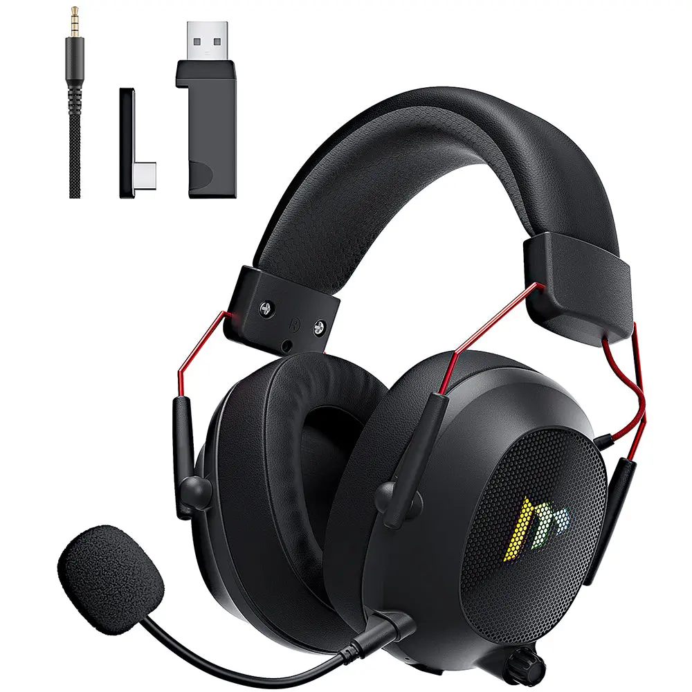 Mytrix Tac Master 2.4GHz Wireless Gaming Headset with Noise Canceling Microphone for PC, PS4, PS5, Mac, Bluetooth 5.3 Gaming Headphones with RGB Light, Surround Sound, 48H Battery
