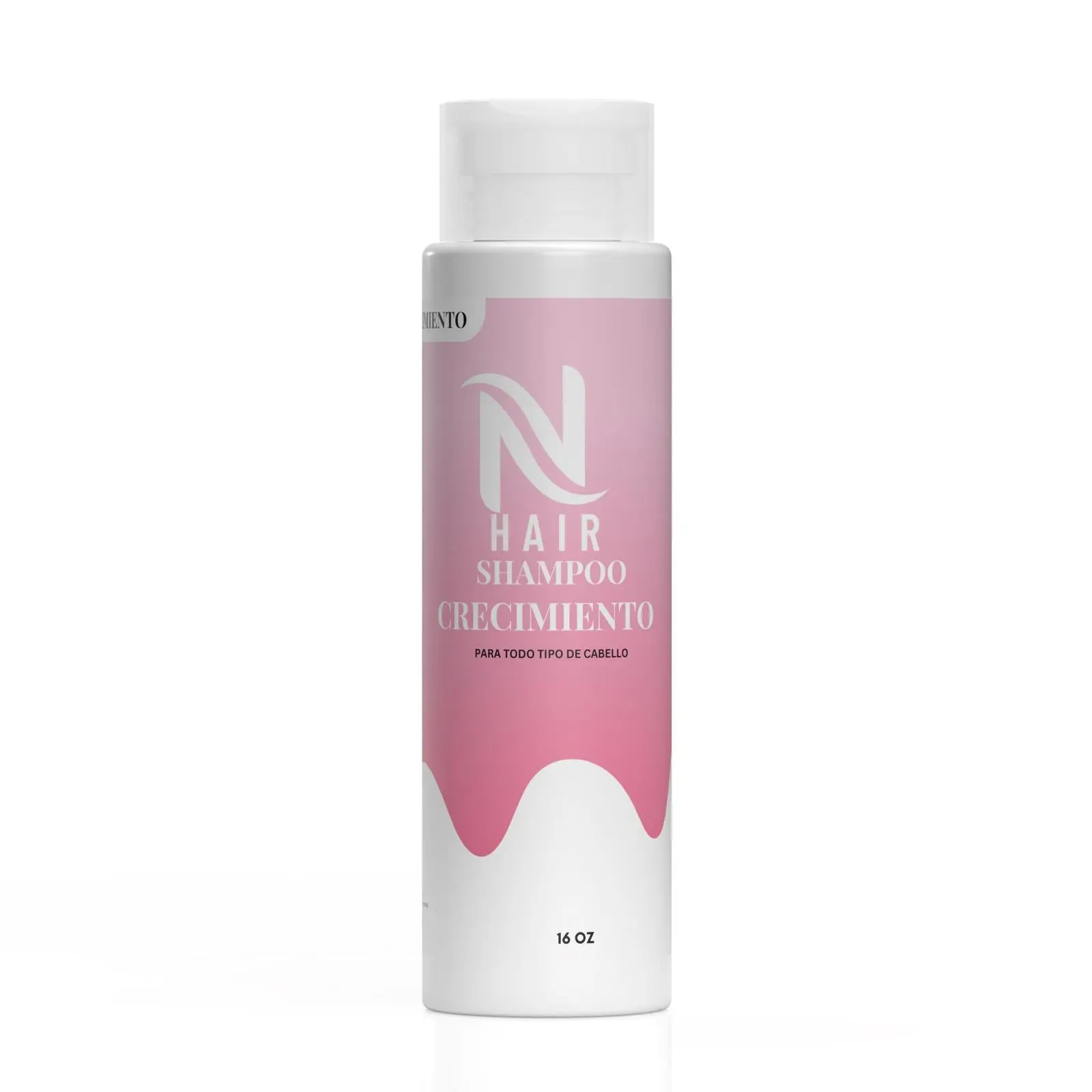 ·The image shows a pink and white bottle with the product name "SHAMPOO CRECIMIENTO" prominently displayed.