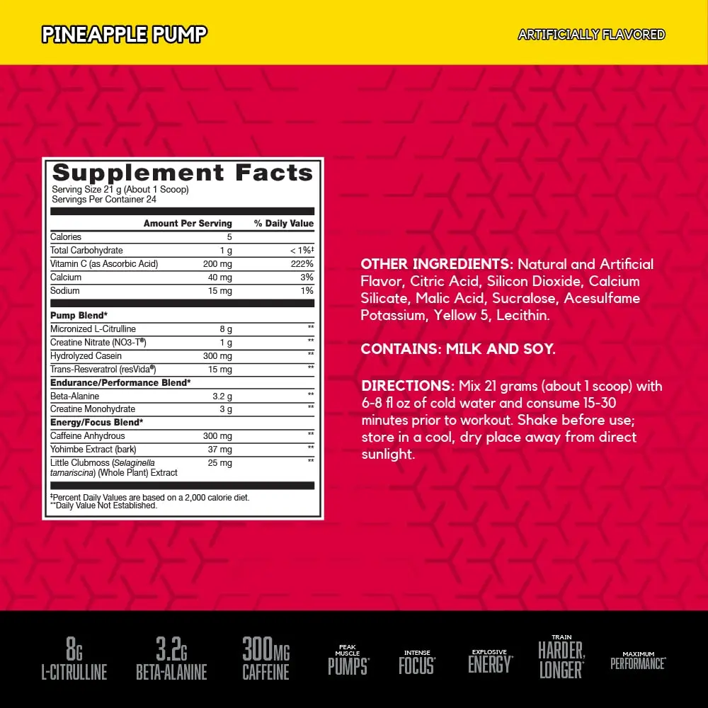 Supports Peak Muscle pumps. Intense Focus. Explosive Energy. Scientifically Engineered to deliver the ULTIMATE PUMP
