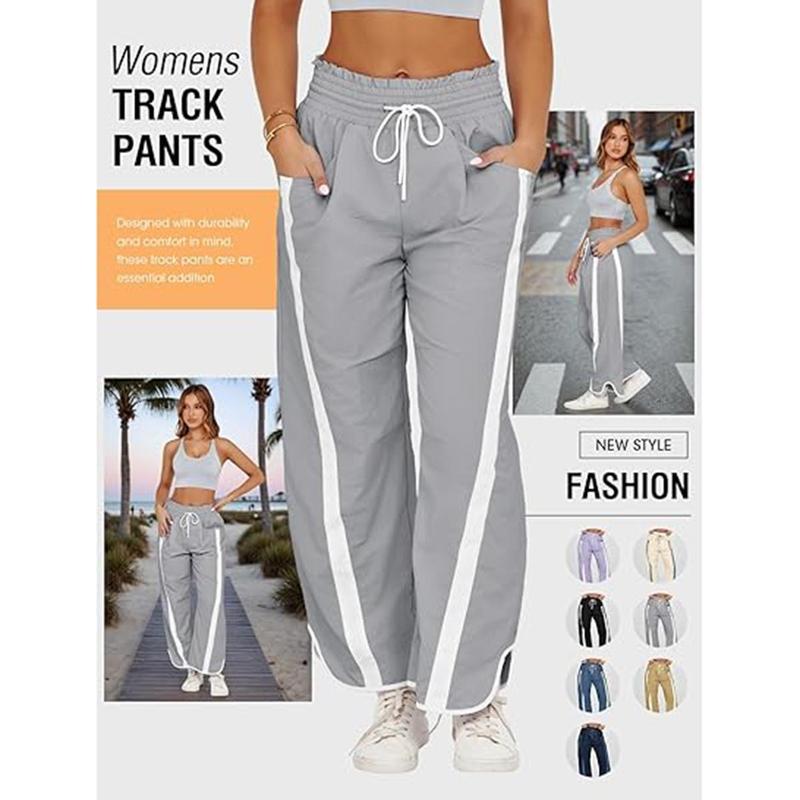 Naeduo Women's Baggy Wide Leg Pants Casual Drawstring Elastic Waist Contrast Color Workout Y2K Track Pants Striped Sports Bottoms All Seasons Lightweight Parachute Fabric for HyroxNaeduo Women's Baggy Wide Leg Pants Casual Drawstring Elastic Waist Contrast Color Workout Y2K Track Pants Striped Sports Bottoms All Seasons Lightweight Parachute Fabric for Hyrox
