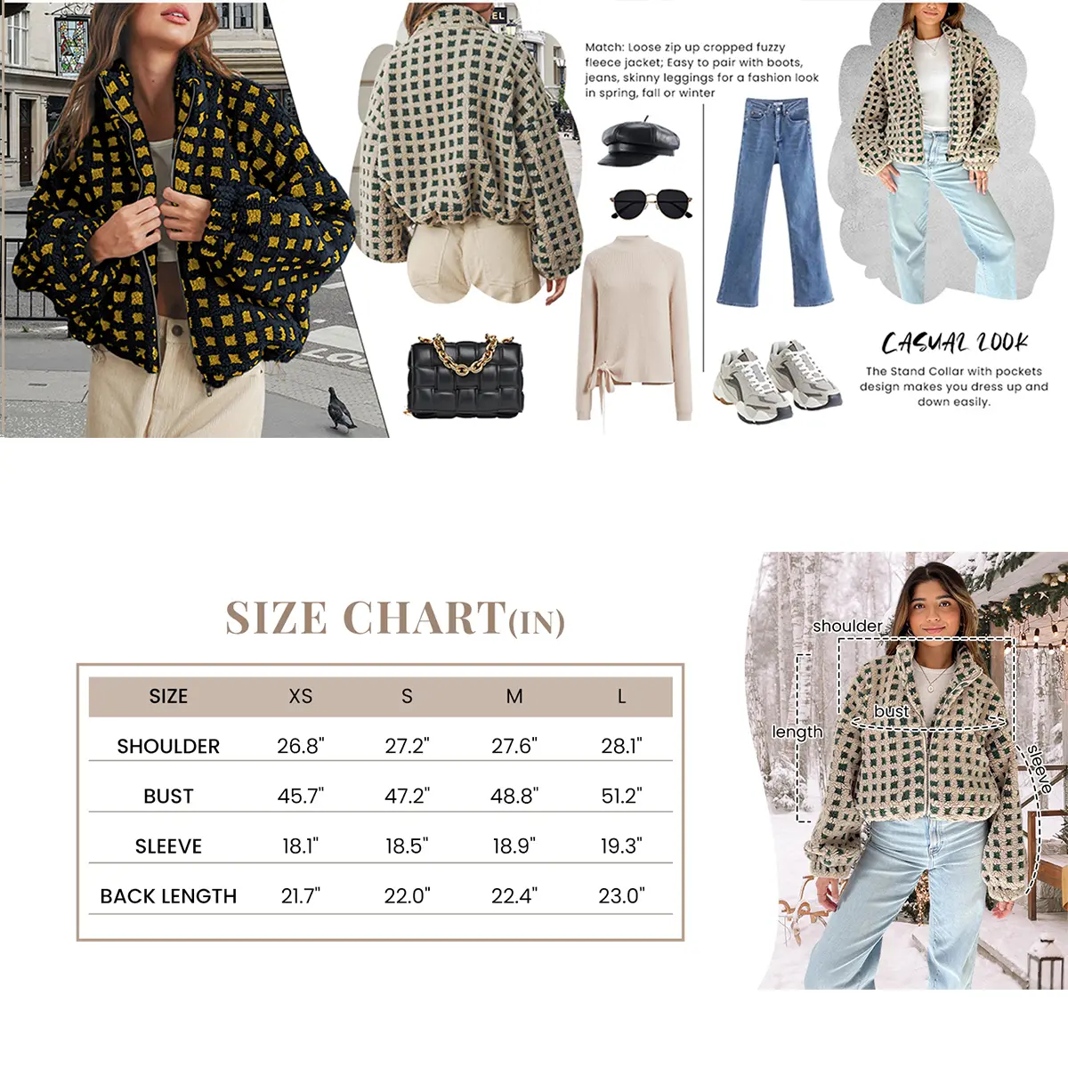 The Naeduo Sherpa Fleece Jacket is equipped with a durable zipper closure that ensures easy on and off. The zipper is designed to glide smoothly, providing a secure fit and extra warmth when zipped up. It’s an ideal jacket for layering over other outfits during chilly fall and winter days.