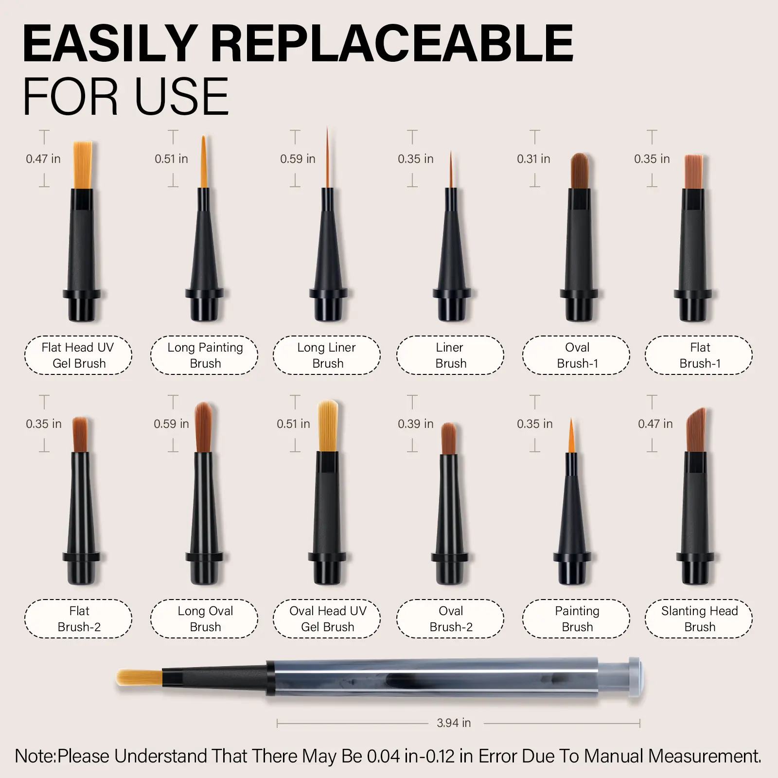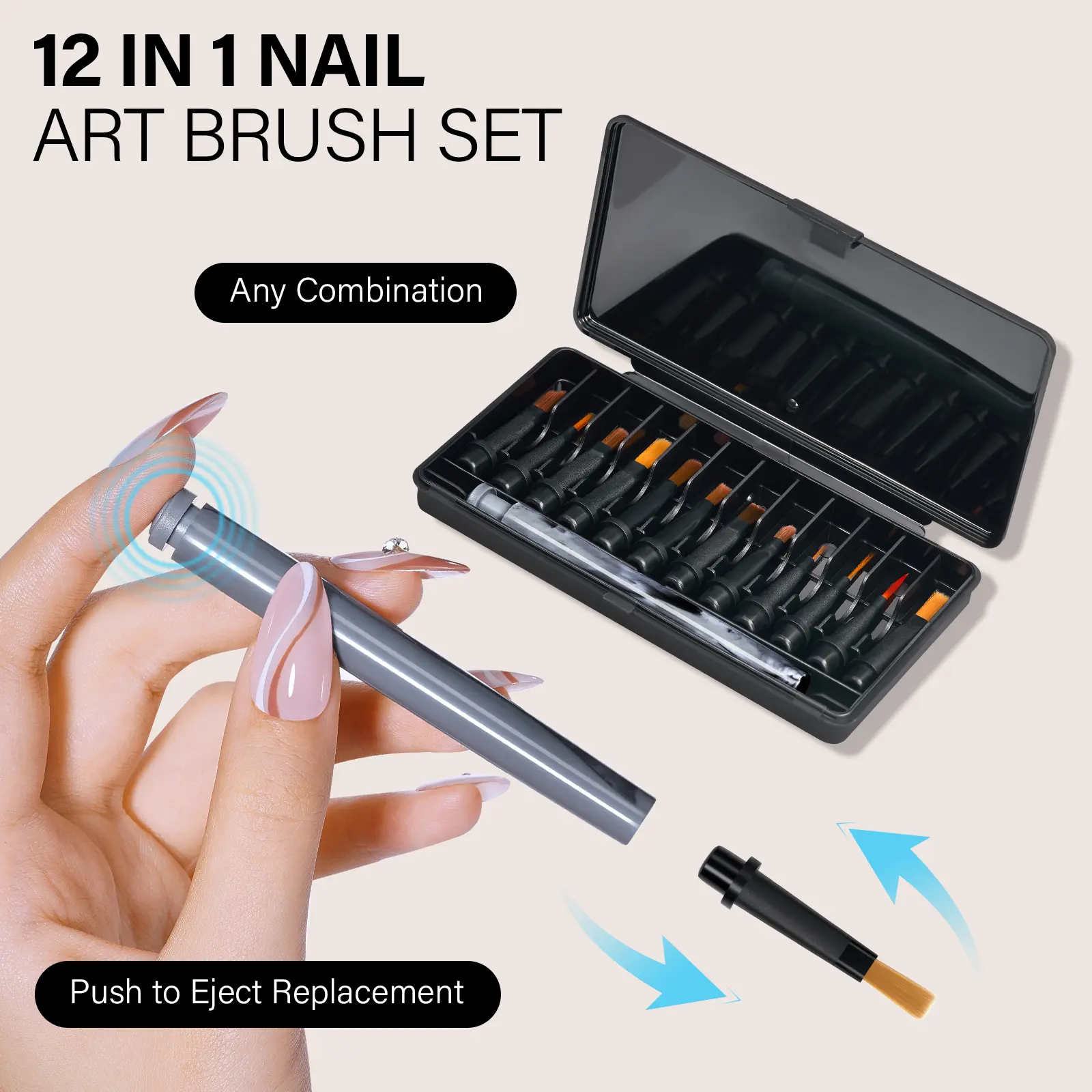 Elevate your nail art with our Premium Replaceable Nail Art Brush Set, featuring 12 interchangeable brush heads designed for every aspect of nail artistry.