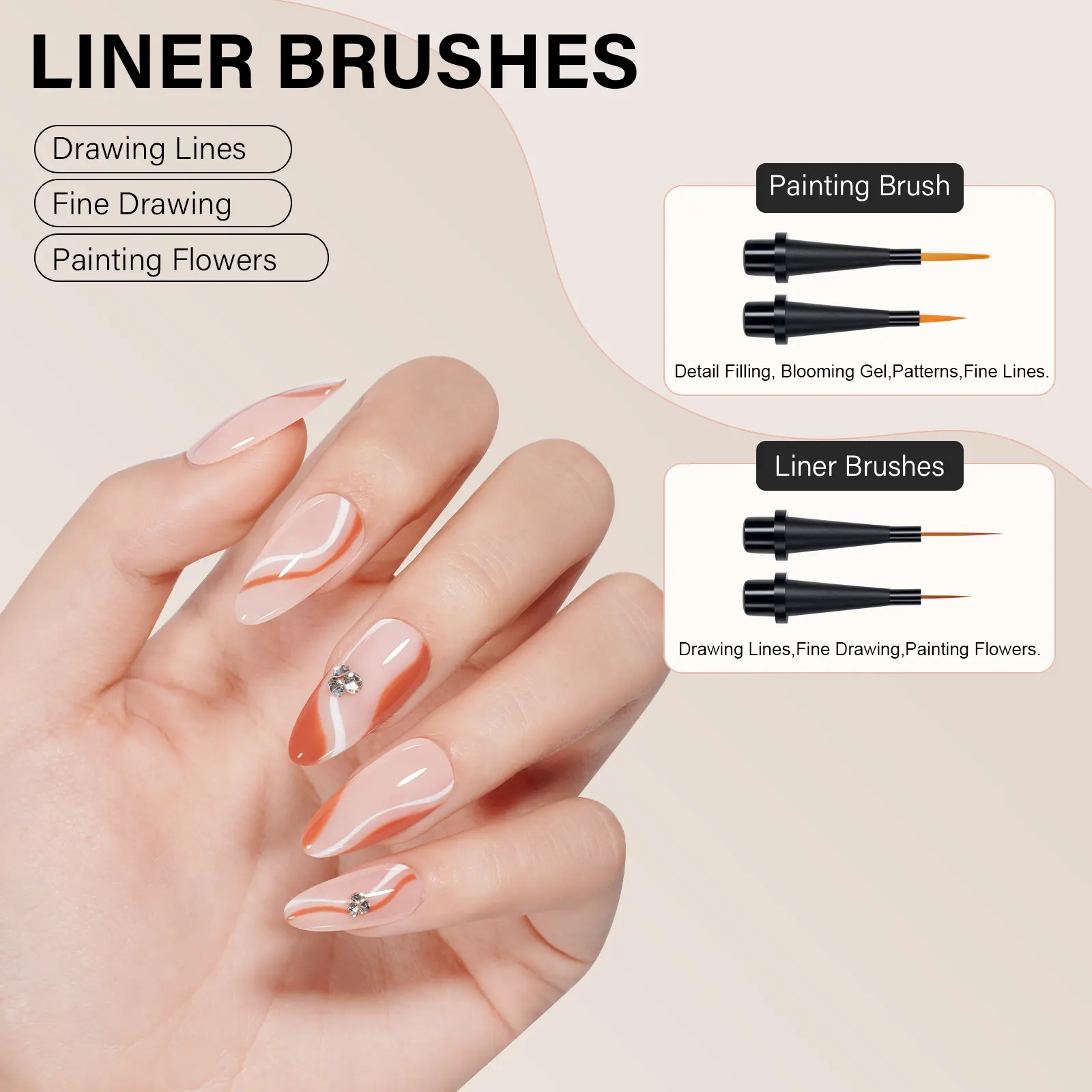 ·Perfect for drawing beautiful 3D colorful patterns, flowers, plaids, delicate cartoon patterns, French nails, or any detailed nail art