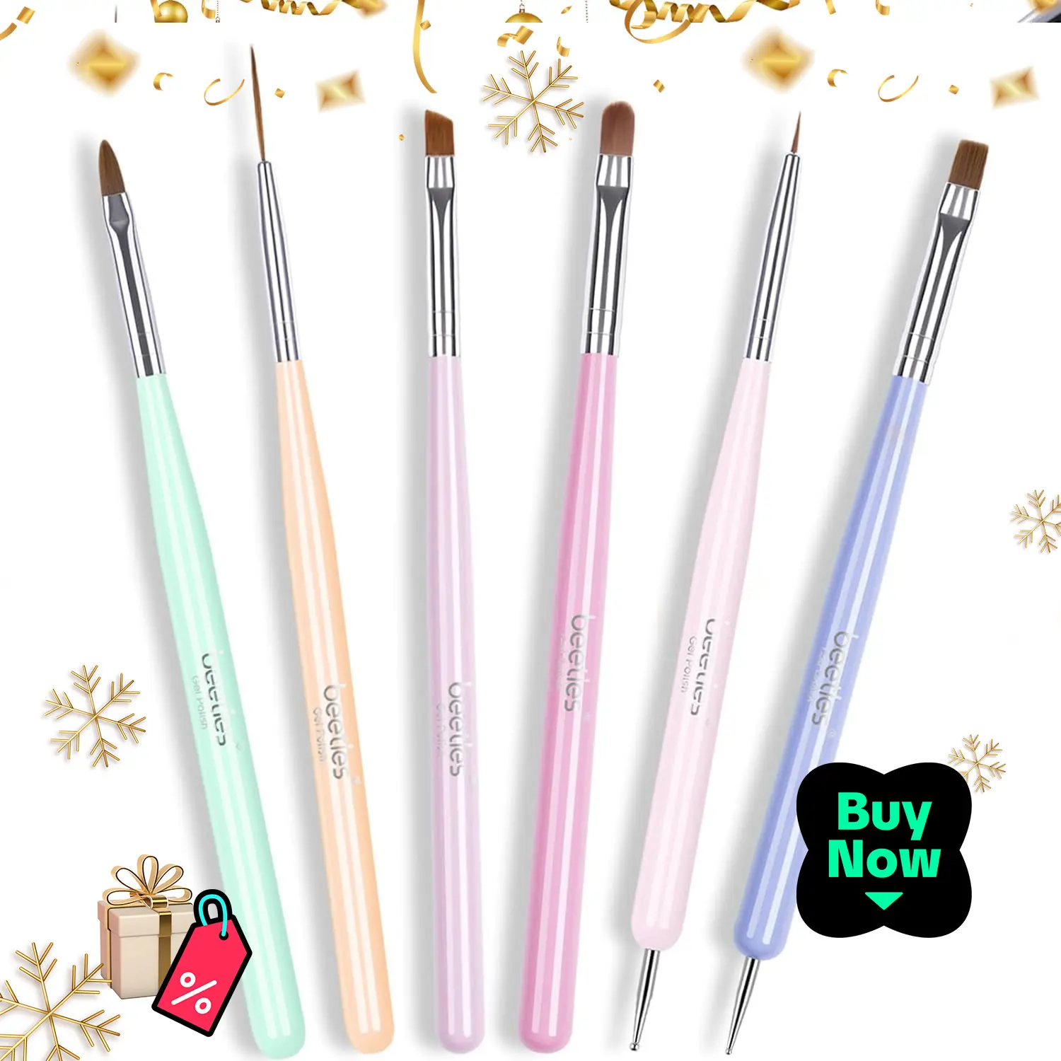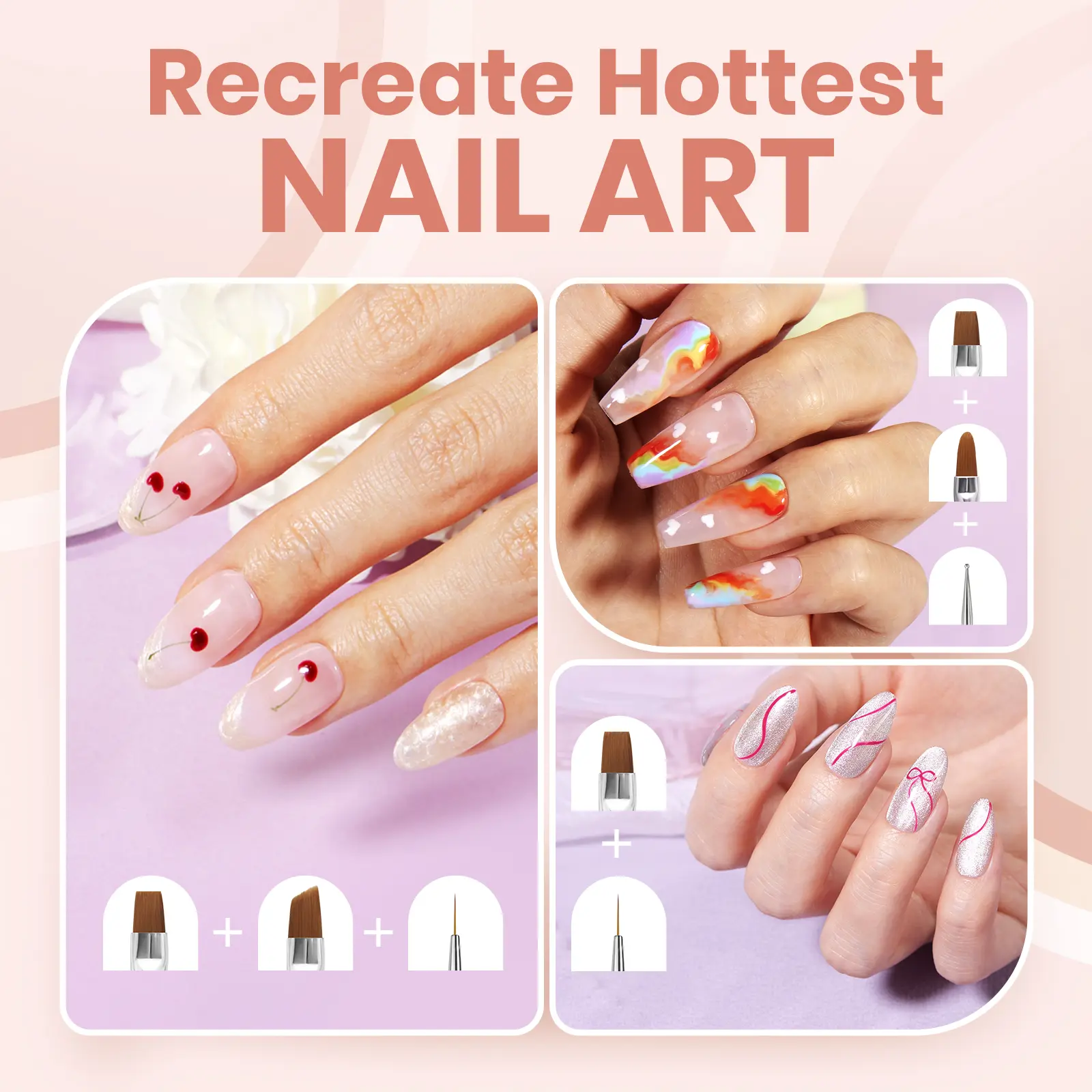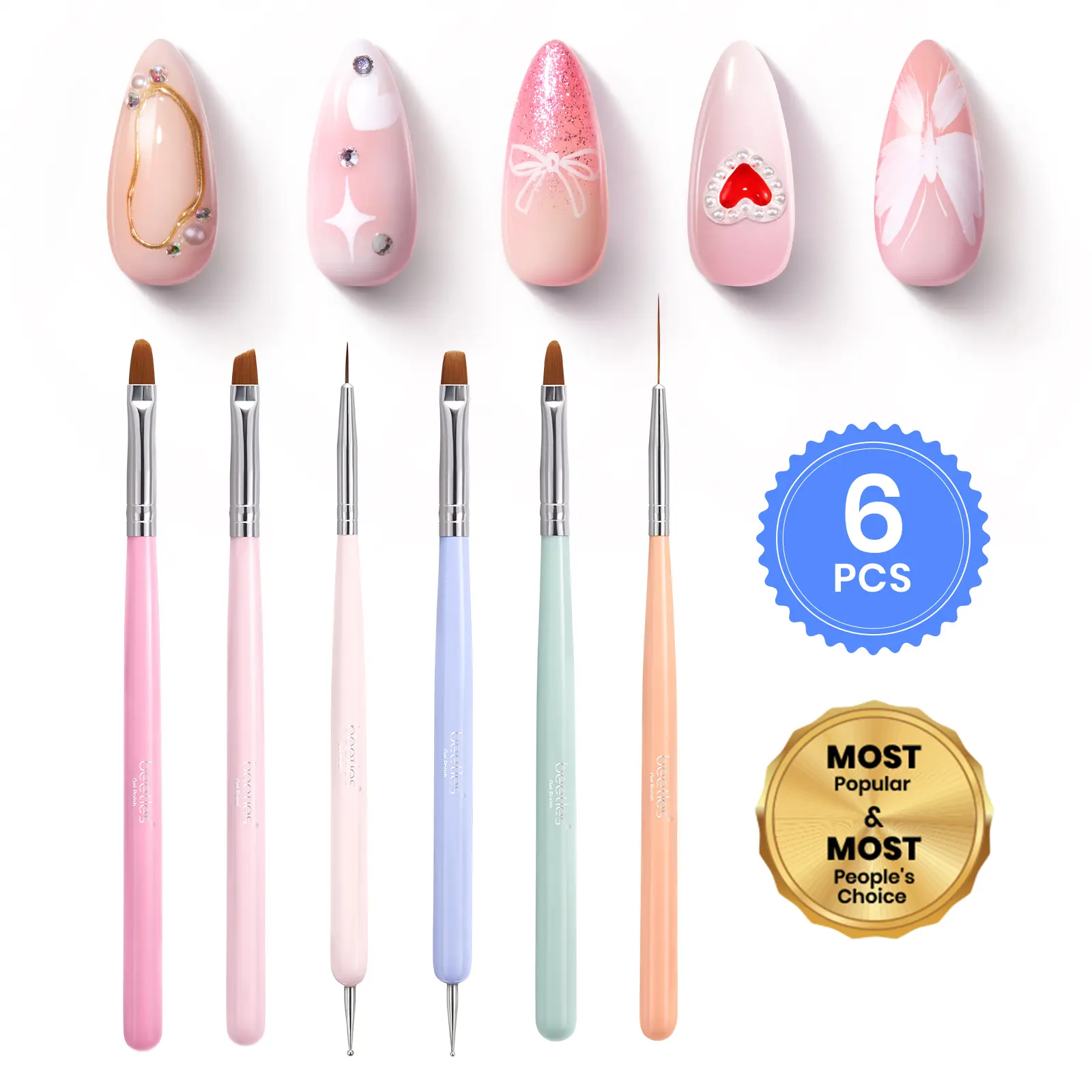 Bundle Set 6 Pack: Professional nail brushes come with 6 different nail design pens, including nail extension gel brush, builder nail gel brush, nail carved pen, nail art liner brush, and nail dotting pen. They will give you beautiful nails right at home.