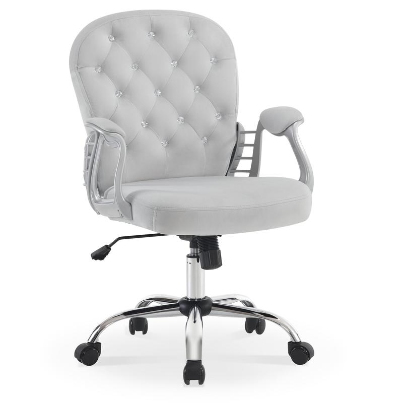 • Soft velvet fabric for luxurious touch.• Solid polypropylene armrests and sturdy metal base for durability.• Dimensions: 21.7"(D) x 17.7"(W) x 35.4-38.8"(H).