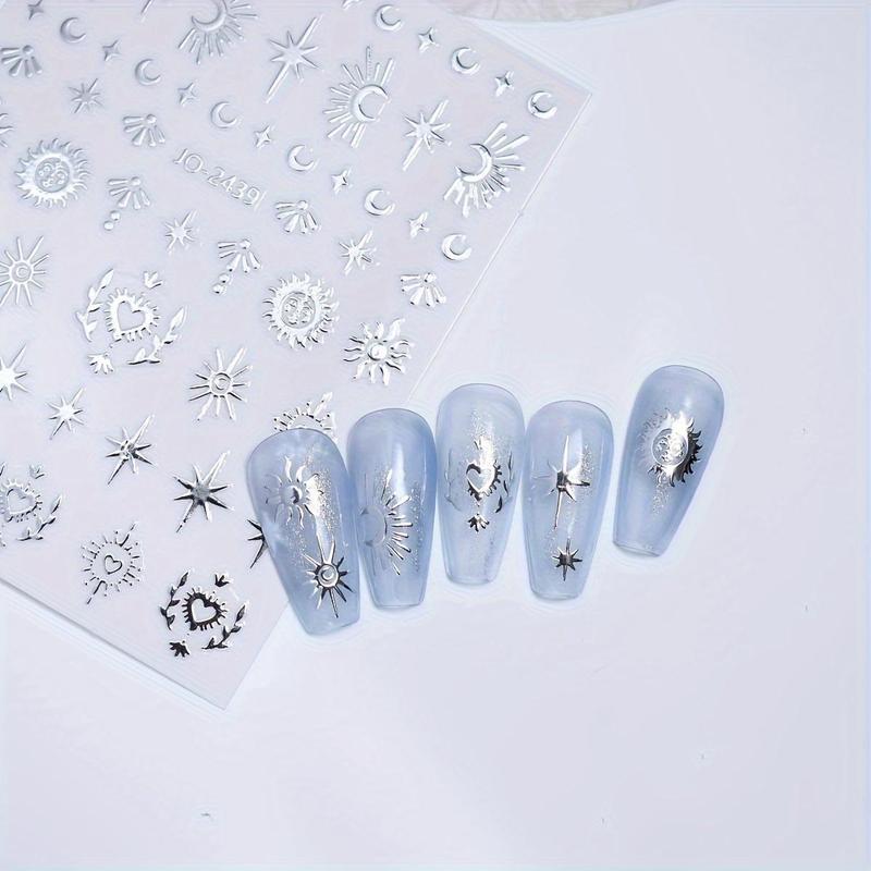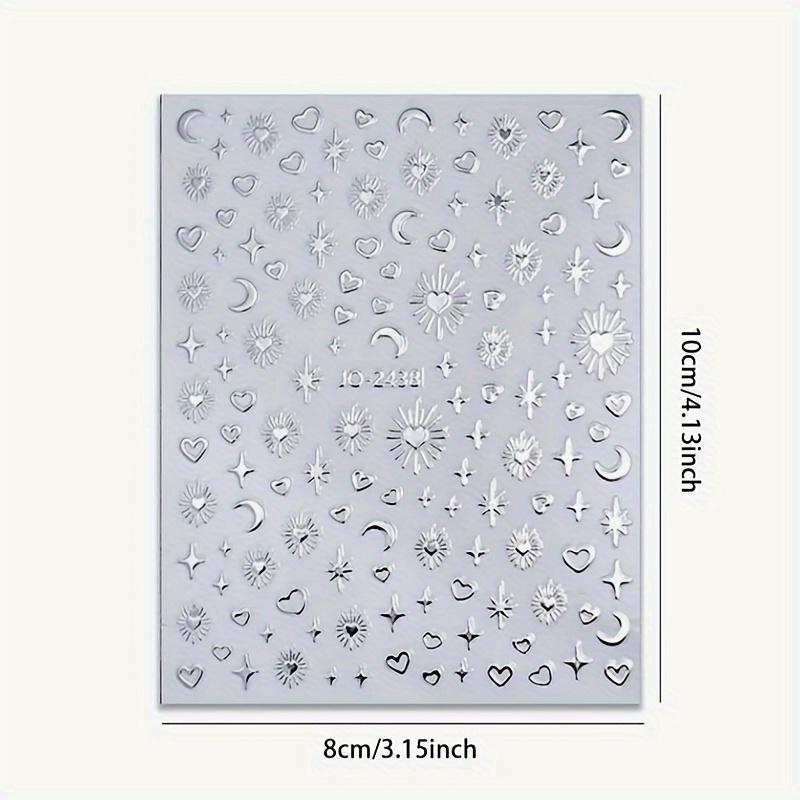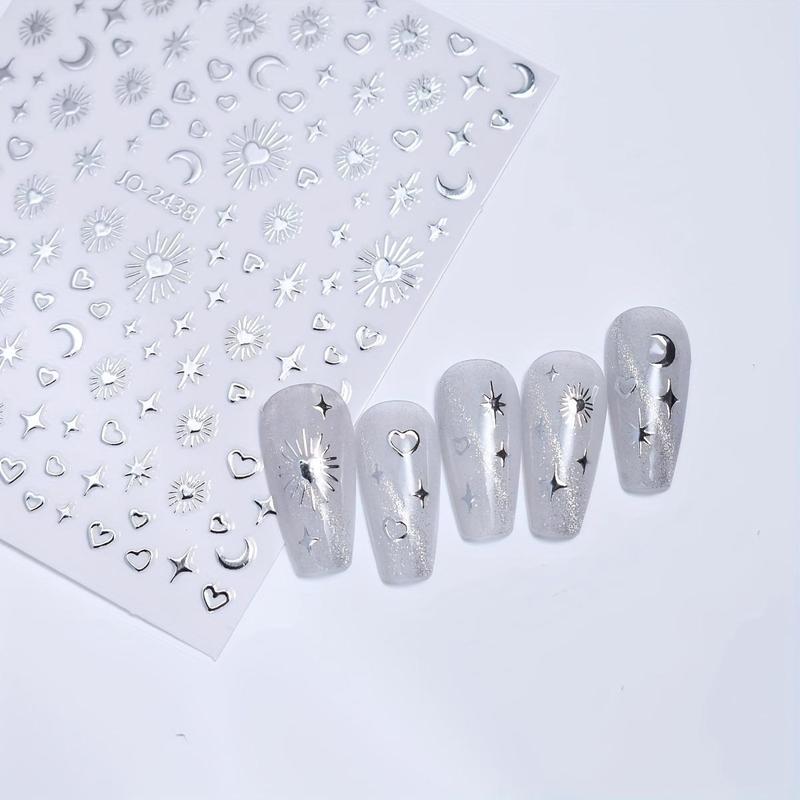 4. 3D Star & Moon & Heart Pattern Nail Art Sticker, 6 Sheets Self Adhesive Nail Decal, French Nail Art Decoration for Women & Girls