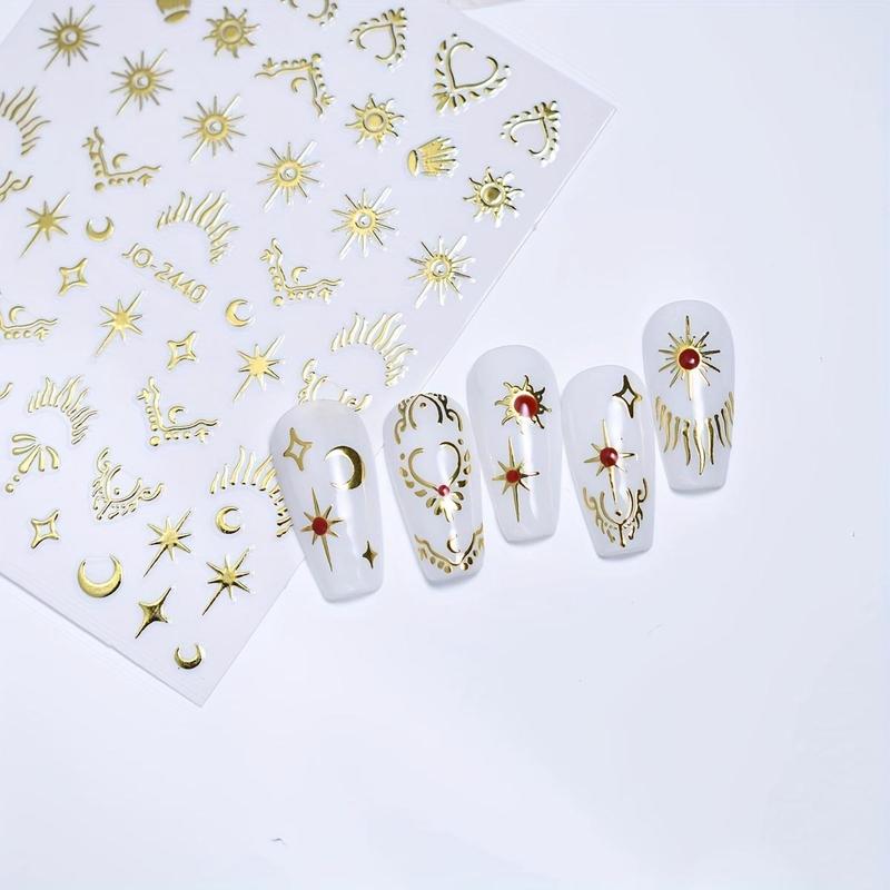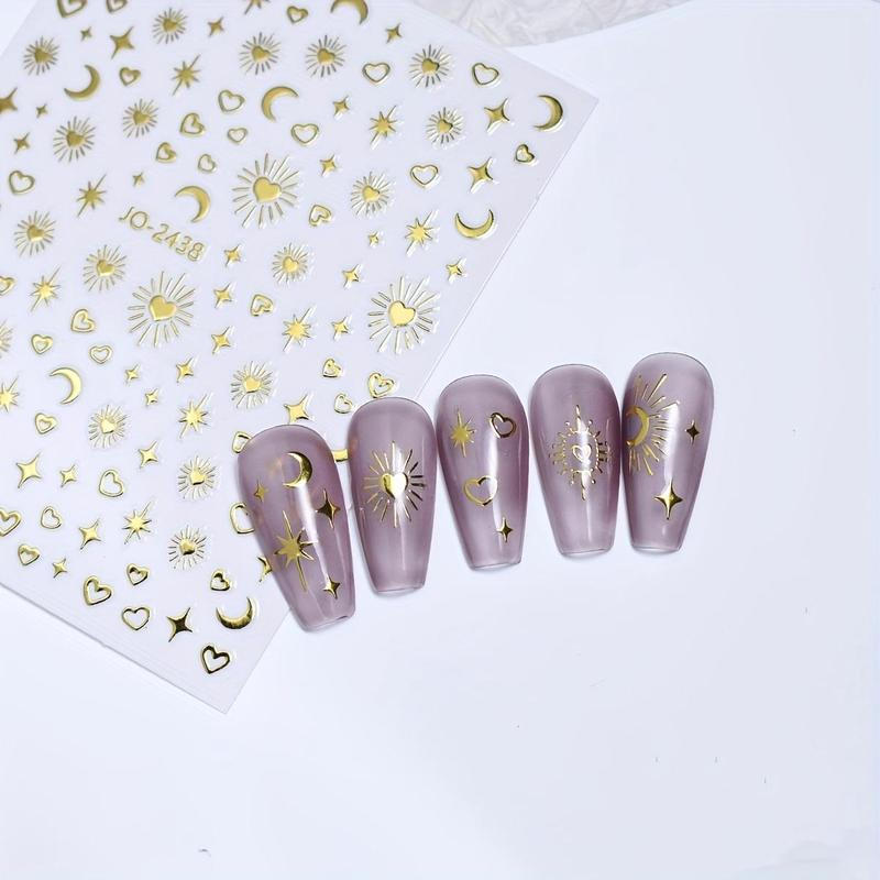 3D Star & Moon & Heart Pattern Nail Art Sticker, 6 Sheets Self Adhesive Nail Decal, French Nail Art Decoration for Women & Girls