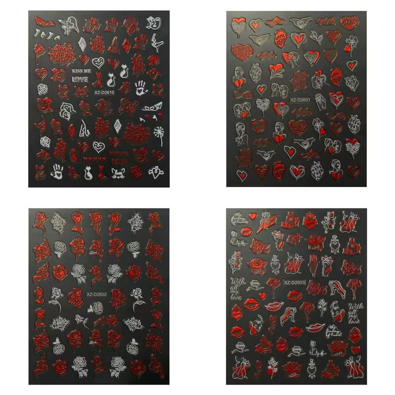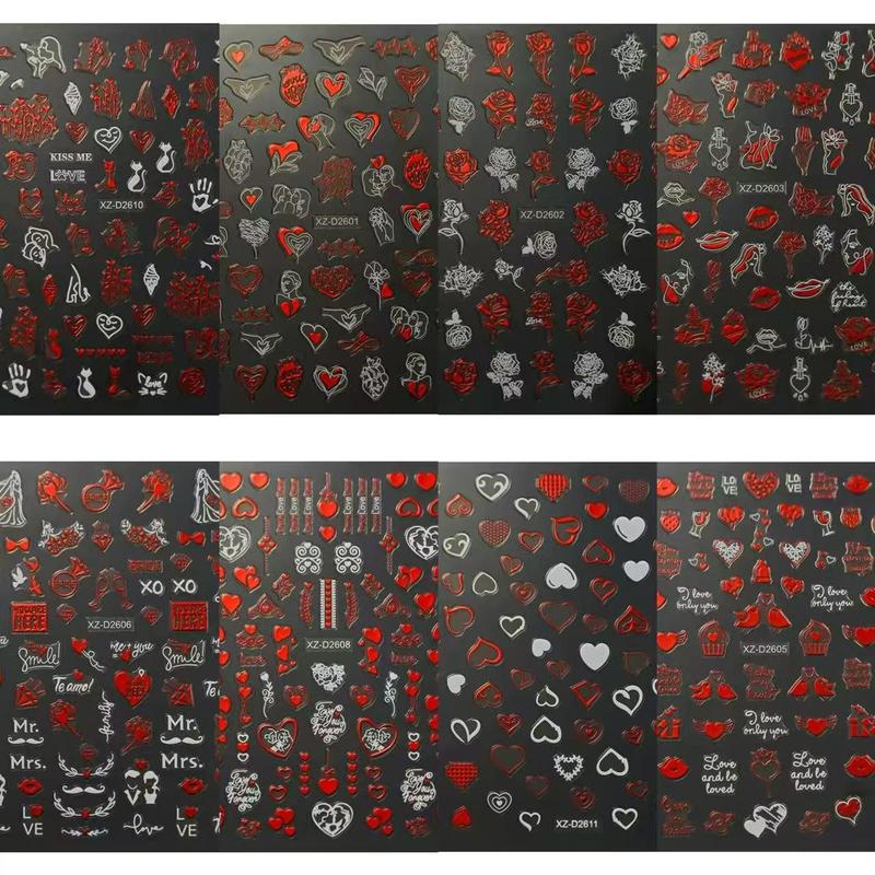 Heart & Lip Pattern Nail Art Sticker, 8 Counts/set Nail Art Design Romantic Love Nail Decal, Elegant Nail Decoration, DIY Nail Art Decoration for Women & Girls