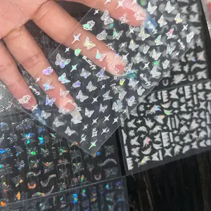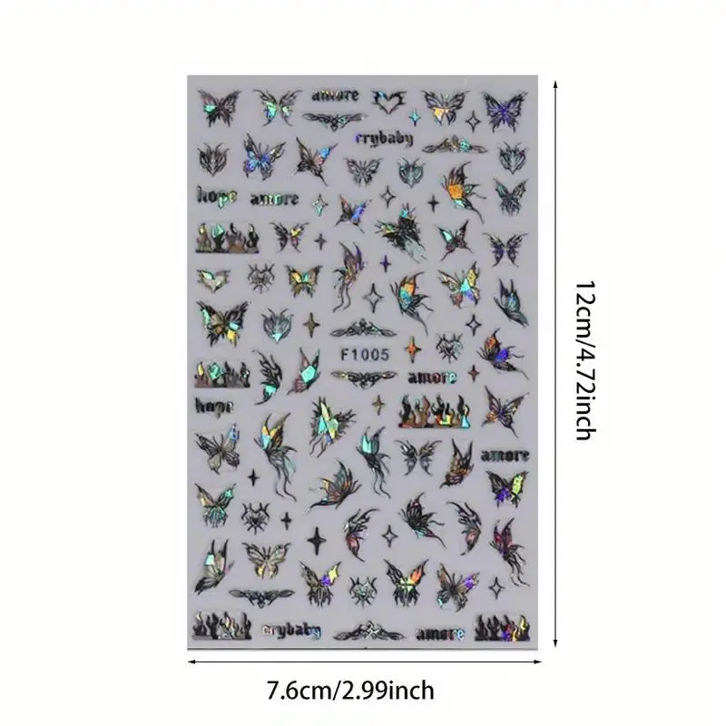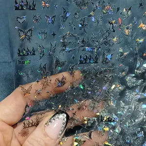 Butterfly Pattern Nail Art Sticker, 8 Sheets/bag 3D Self-adhesive Nail Art Supplies, Holographic Laser Glitter Butterfly Nail Design Nail Stickers