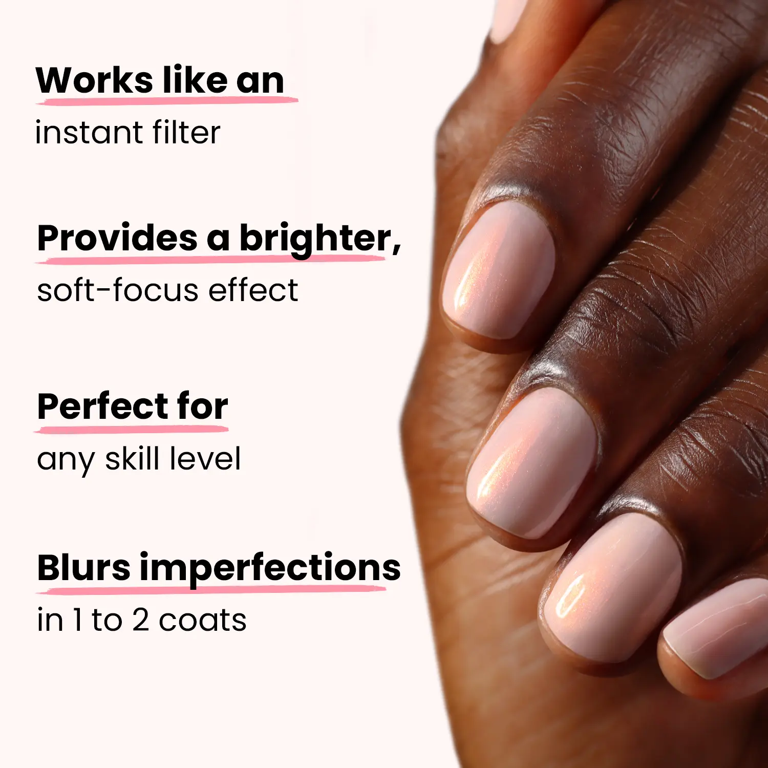 A perfect soft iridescent pink! So easy 2 coats and a perfect manicure!