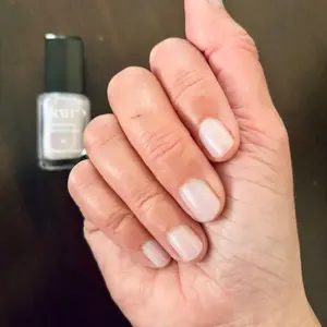 I love love love this stuff!! It provides the look I’ve been searching for years for. It doesn’t streak and it gives beautiful opaque coverage with only two coats. Gives that gorgeous milky natural look…neutral “go with anything” color with an even finish. After two weeks, I have no chips and my nails still look fantastic after lots of hand washes, typing & crafts.