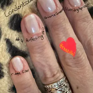 💅 I have fallen in love with this Quartz concealer on top of perfecting veil. In 15 minutes I have a beautiful manicure. I used two thin coats of ridge filler because it's my nail miracle. It balances and evens out my thinner nails and helps whatever I'm using next go on smoothly. I added one thin layer of the Perfecting Veil #4 and finished with one coat of the Quartz 😍 and then a coat of Flash Dry topcoat. I sealed the deal with accelerating drying drops. It makes my hands look like I spent the day at the nail salon. It's really beautiful. 💅