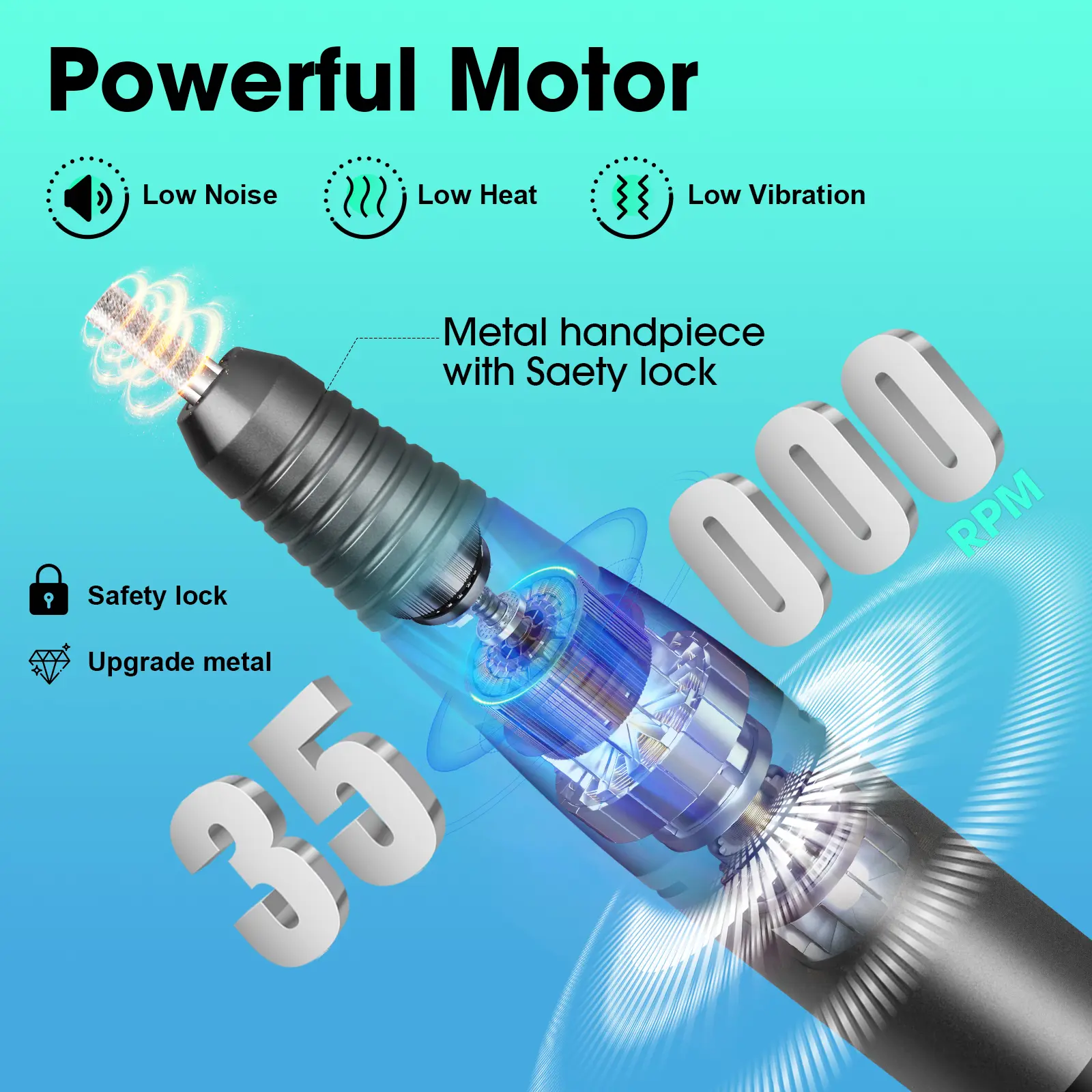 ·PROFESSIONAL NAIL FILE DRILL: The speed can be as high as 35,000 RPM, you can adjust the speed with precision by simply rotating it easily. Comfortable to hold, left and right hand mode can be used.