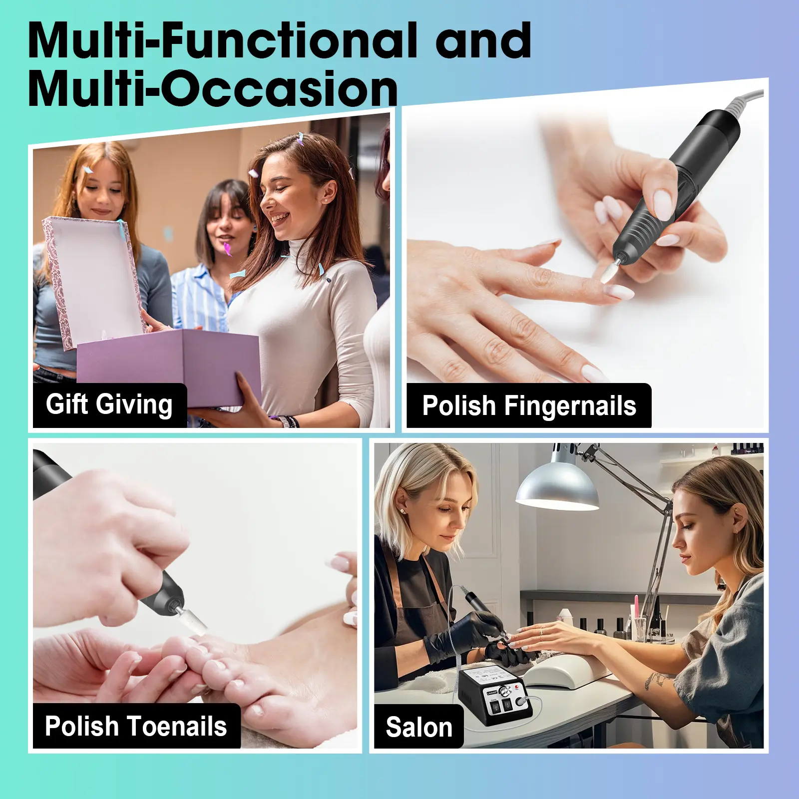 ·MULTIFUNCTIONAL USE - Our electric nail file great for DIY acrylic nails, regular nail and gel nail . Used for for manicure, pedicure, shaping, carving, cutting, routing, sanding, grinding, polishing and smoothing calluses or hardened skin on your hands and feet. It is ideal for beginners and professionals.