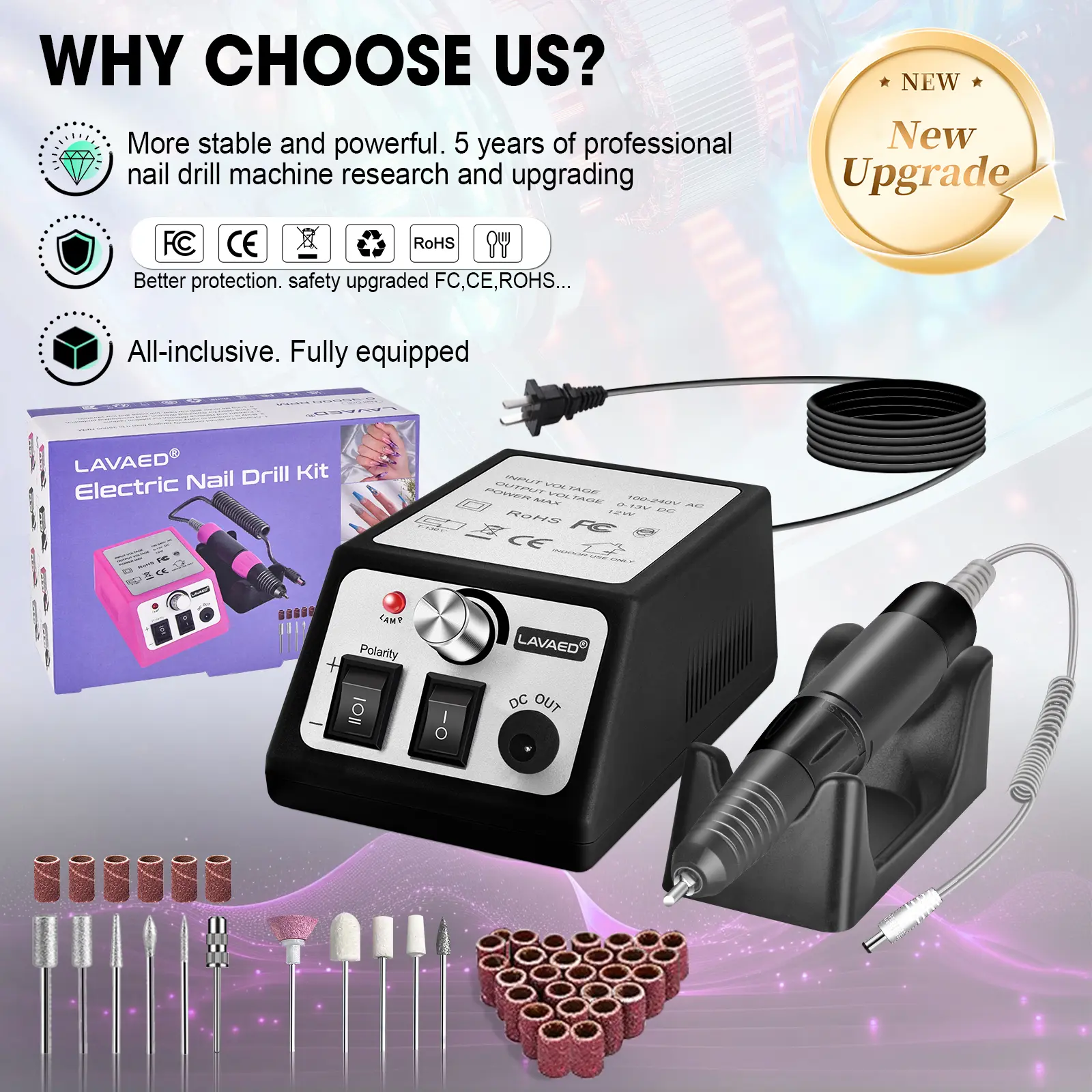 ·WHY CHOOSE US: LAVAED nail filer electric is small but powerful! and comes with a set of professional nail accessory tools, giving you a great value experience. We provide you with confidence service, if you have any questions please feel free to let us know, LAVAED nail drill is committed to provide you with a better nail experience.