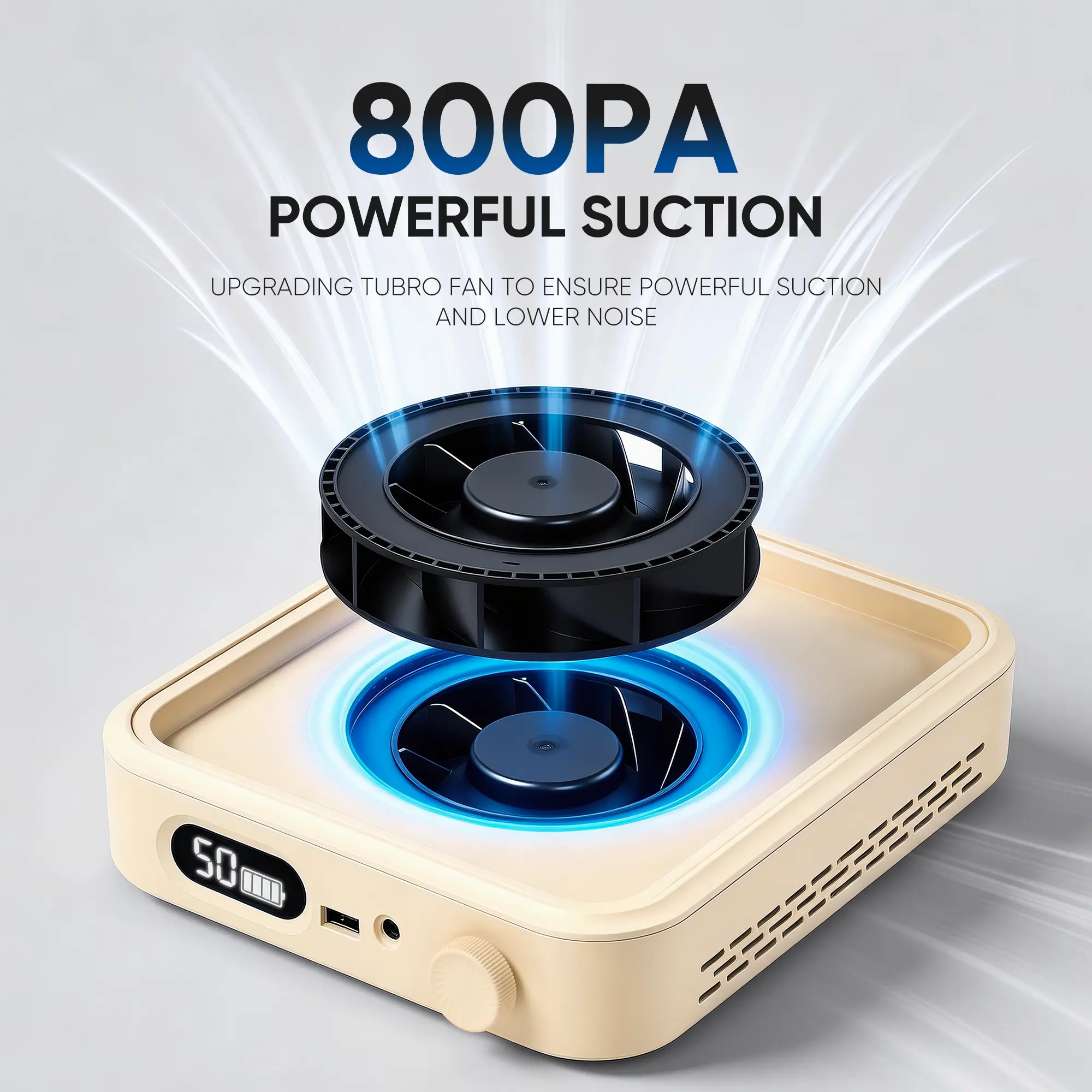 Powerful 800Pa Turbo Suction with Low Noise