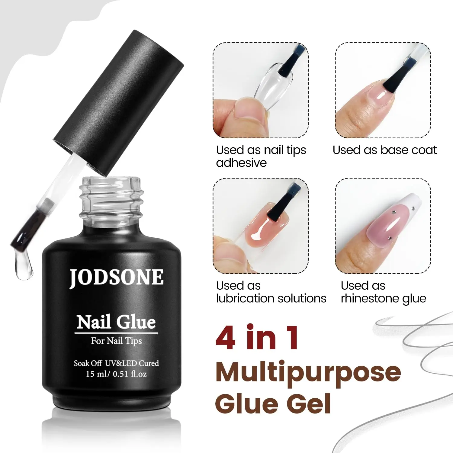 4. JODSONE New Upgraded Version 15ml Nail Glue Gel 5 in 1 for Nail Tips Long Lasting Extension Glue for Clear Nail Tips and Clear Press on Nails, Nail Repair Treatment, Salon Art DIY at Home Need U V Light Cured