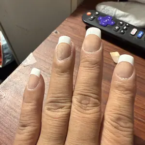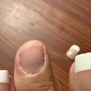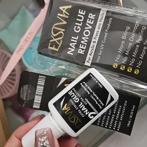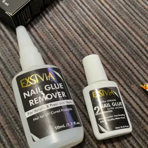 this glue is super strong can last up to a month do not use on thin cheap nails shown in the pic only on acrylic nails like the ones Iam wearing do not try to remove nails without the removal it can damage your real nails soaking them will not work & a little is a lot overdoing can also damage nails