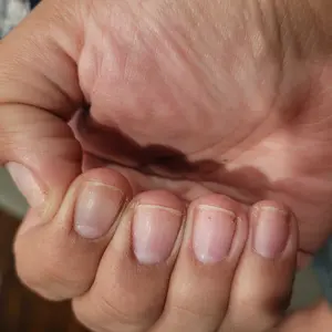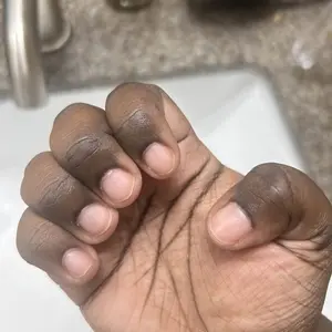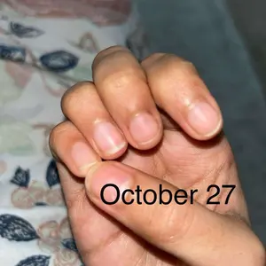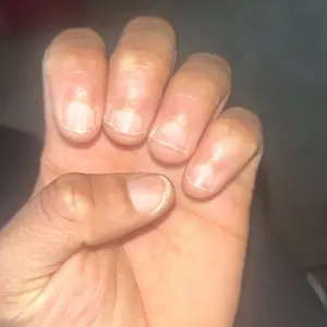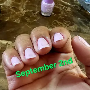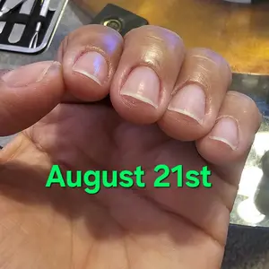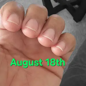 I had acrylics done I took them off, and it's been a week since I started using this product and already I can see a difference. I am gonna contend you updating on my TikTok. Of my journey with this product first 2 pictures are the day I started the dollar 2 are one week later hopefully it works