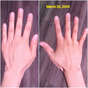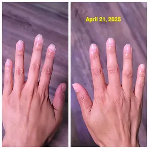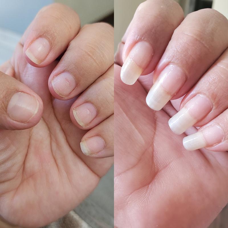 Highly recommend!! From April 7th 2025 to May 21st 2025. I am 33 years old and I have bitten my nails since I was a toddler, so this is literally.... the 1st time in my life thay i actually have real nails. This thickens and grows your nails.