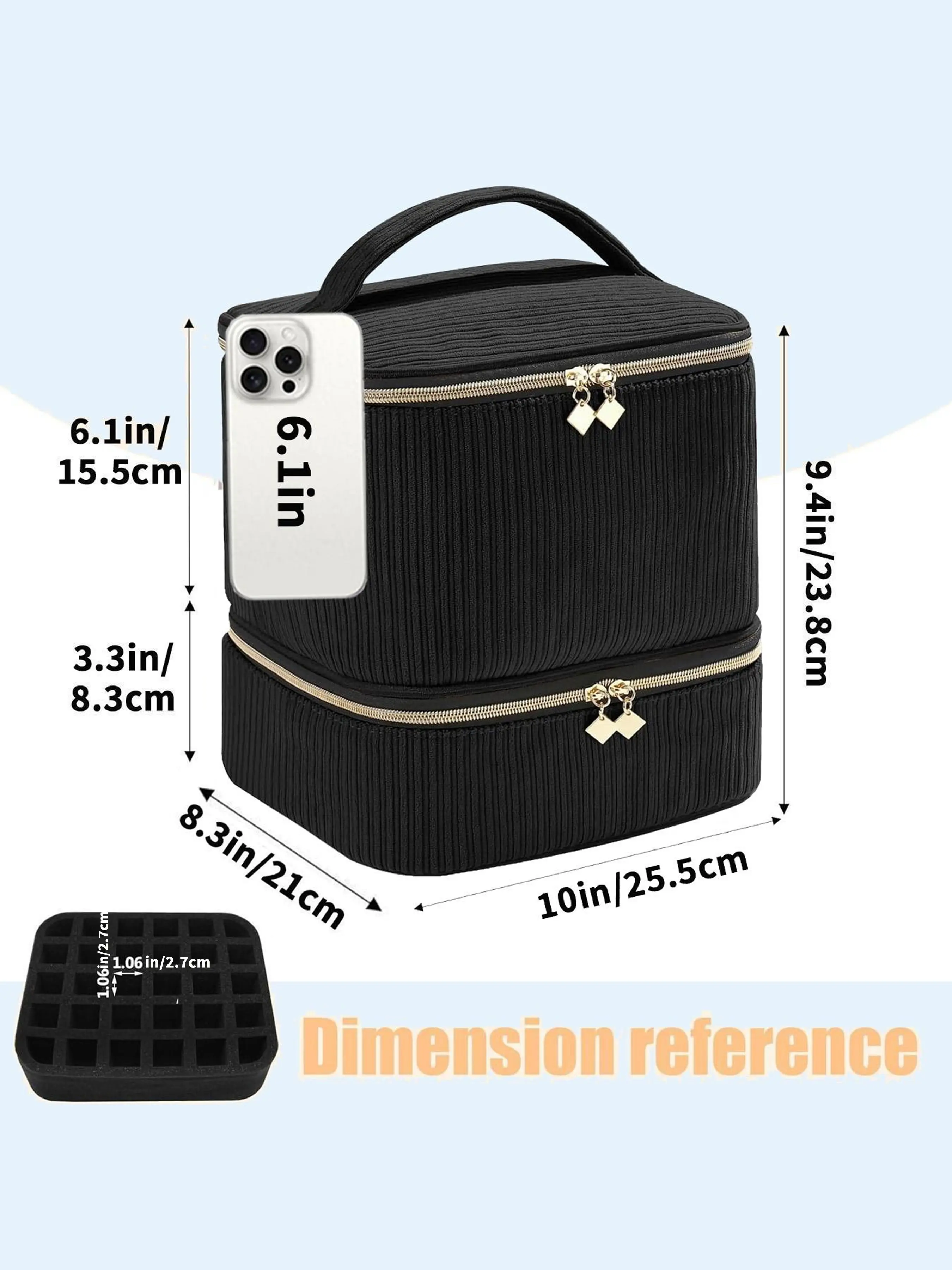 Size: 9.5" x 7.9" x 9.8". The nail polish bag is big enough to hold all your nail polish and manicure accessories tools in an organized manner