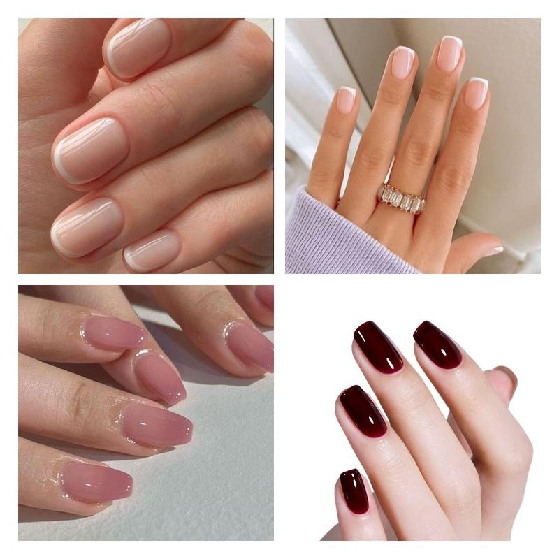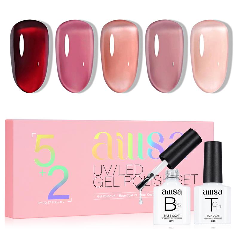 ·【AILLSA 5+2 GEL POLISH SET】The AILLSA jelly gel nail polish set is more buyer friendly and cost effective. If you want to have more than one color at the same time,or if you're a novice buyer trying gel polish for the first time, this kit is perfect.It contains the hottest colors of the moment,with burgundy wine red,grey pink and nude pink,complete with base and top coat.Just one set for your everyday manicure!