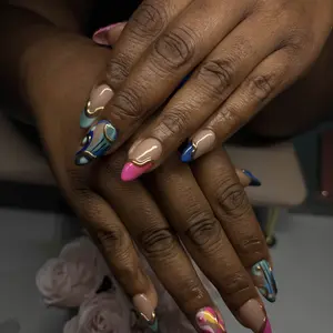 This is absolutely gorgeous I love the application of it and it keeps my nails on for awhile so good job v-beauty pure