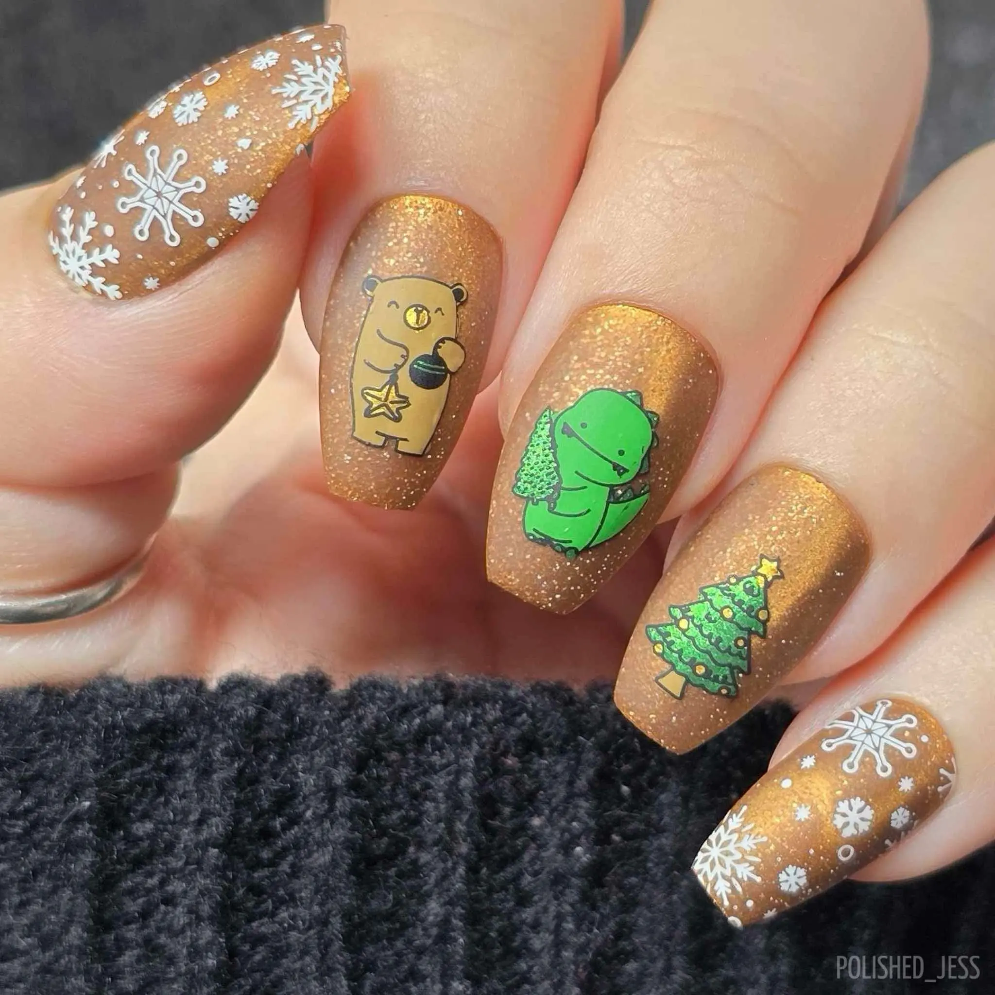 These winter critters are all ready to frolic on your nails! Our Frosty Friends starter kit brings a whole crew of adorable, kawaii animals in full spirit. Featuring lovable creatures from a snuggly bear and a cute elephant, to a curious cat and even a reindeer pal, plus full-nail designs filled with snowflakes, festive trees, and holiday ornaments, this kit will spread smiles and cheer at every holiday party. It’s the ultimate seasonal stamping kit for anyone who loves cute holiday animal nails.